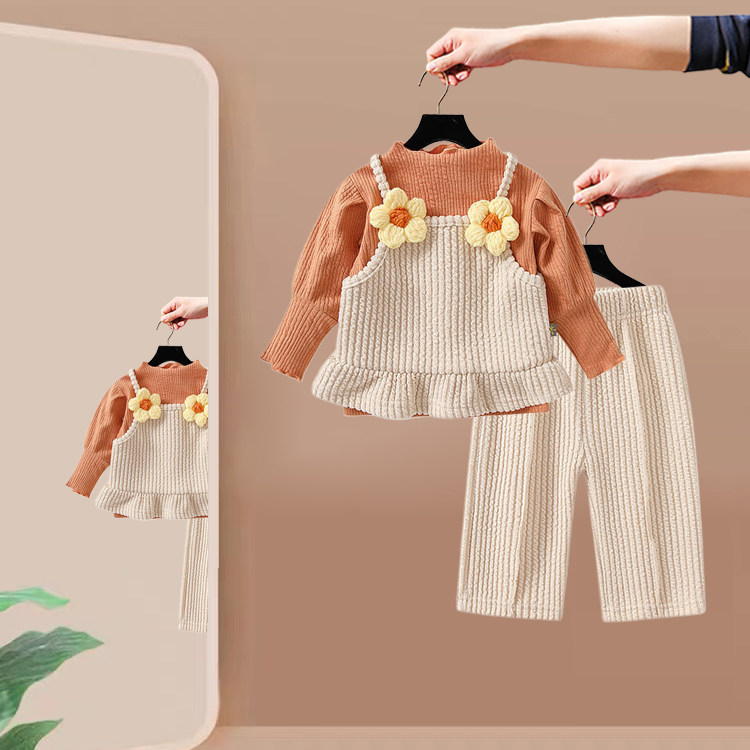 女童春装套装2026新款洋气儿童上衣裤子森系女宝宝三件套春款时髦