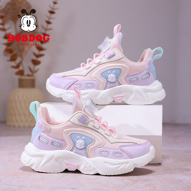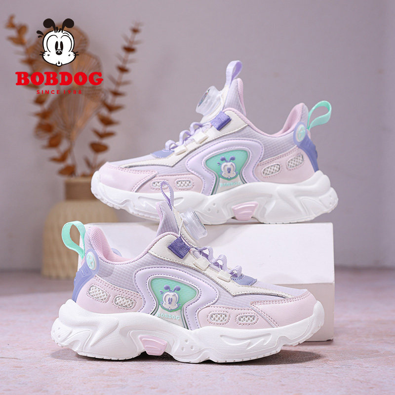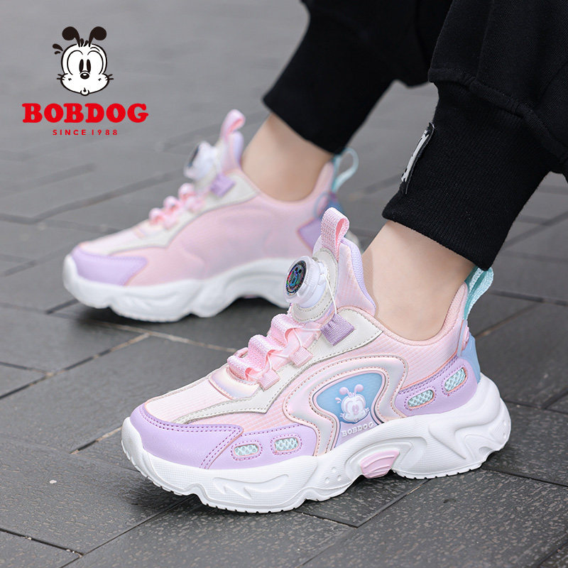 巴布豆女童鞋子运动鞋2026春秋季新款皮面防水儿童女孩休闲跑步鞋