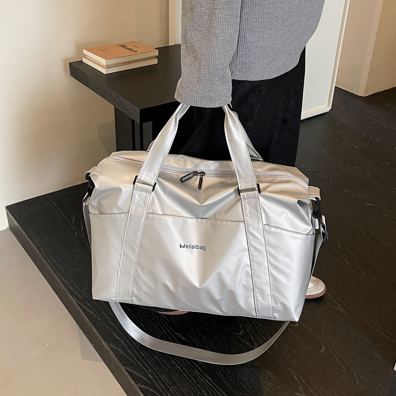 游泳包干湿分离女士银色大容量轻便单肩斜挎简约便携健身运动包