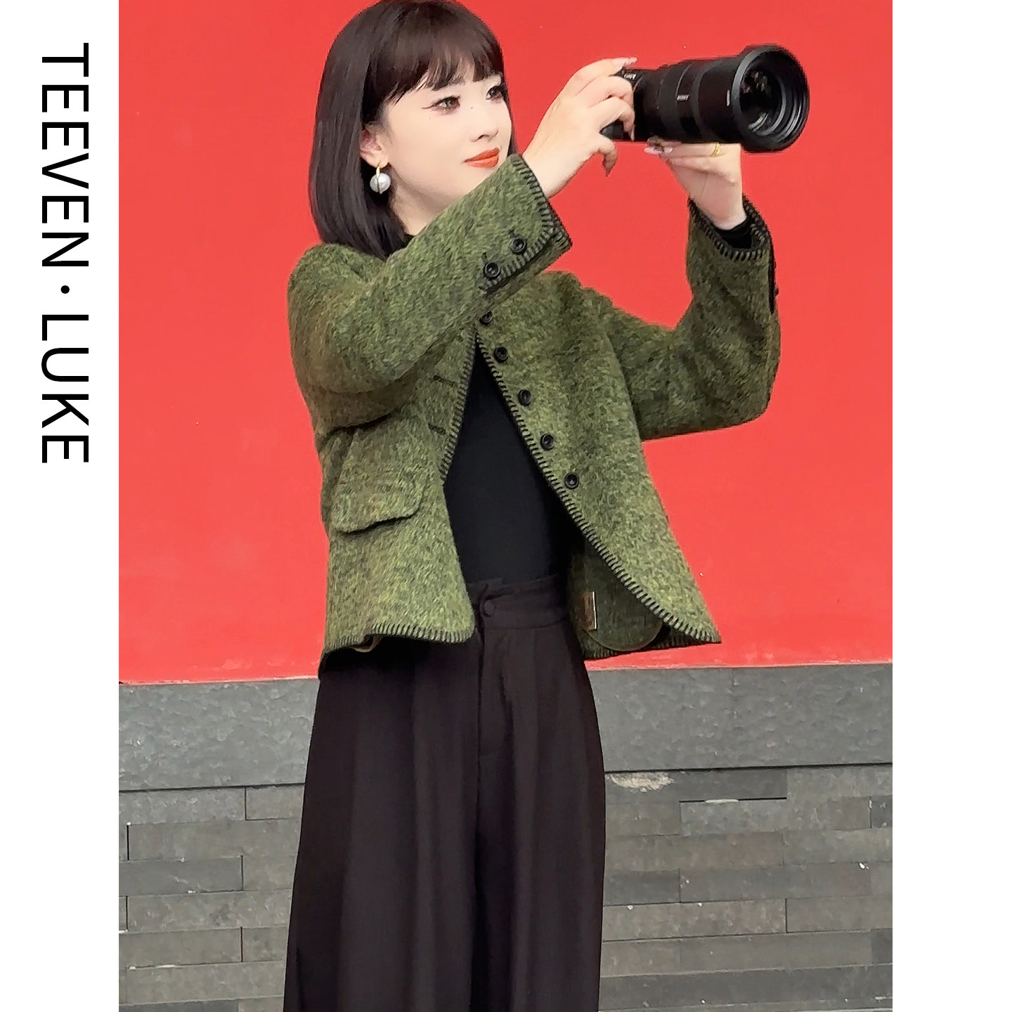 2025秋冬新款小个子气质大衣中老年妈妈秋冬装短款双面羊毛呢外套
