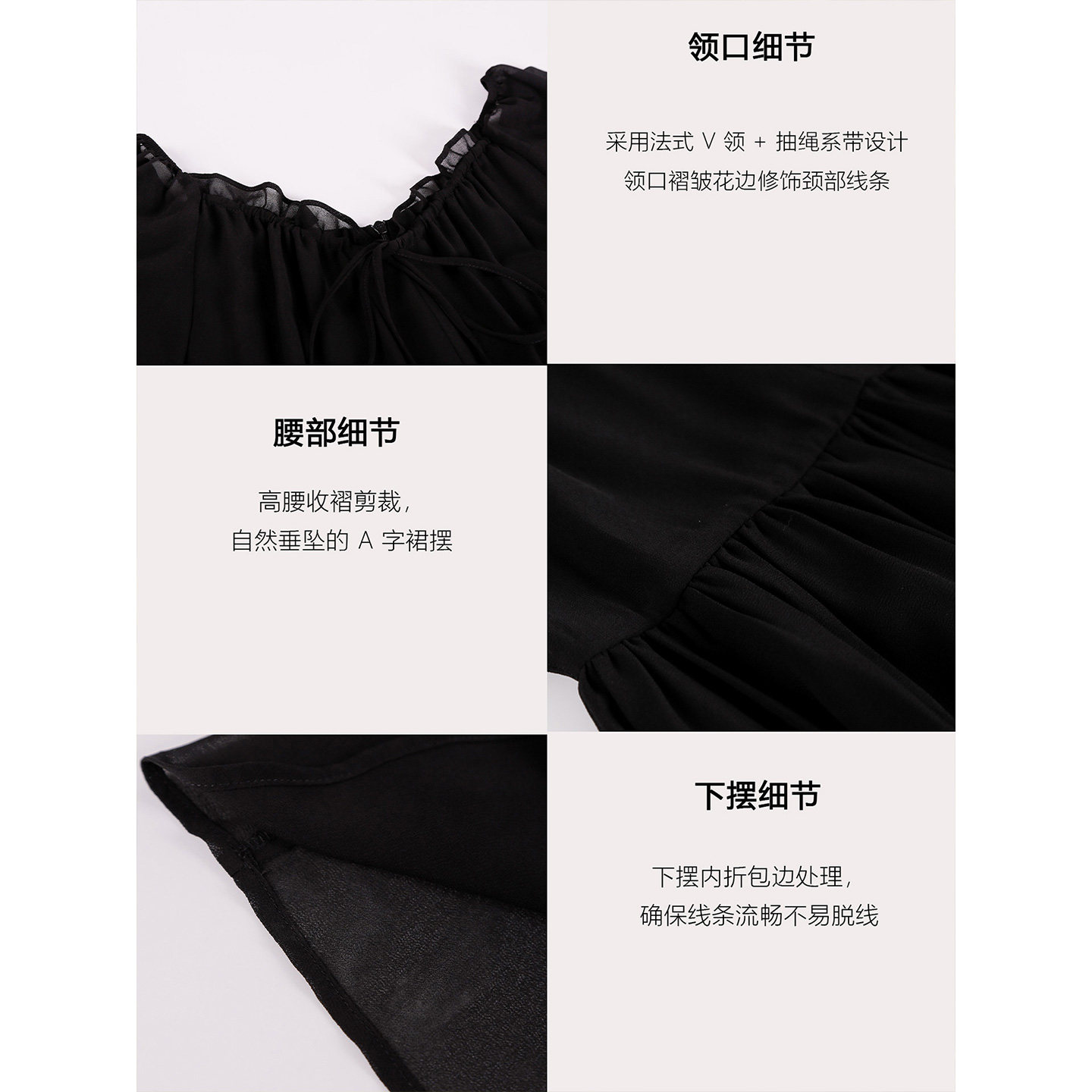 黑色长袖连衣裙女2026年春季新款法式V领高级感气质收腰显瘦长裙