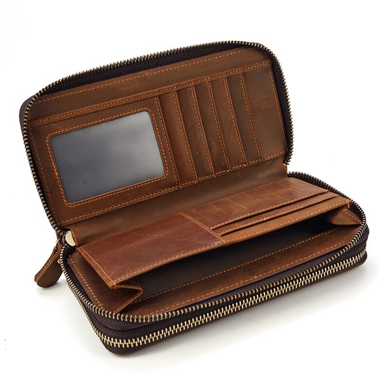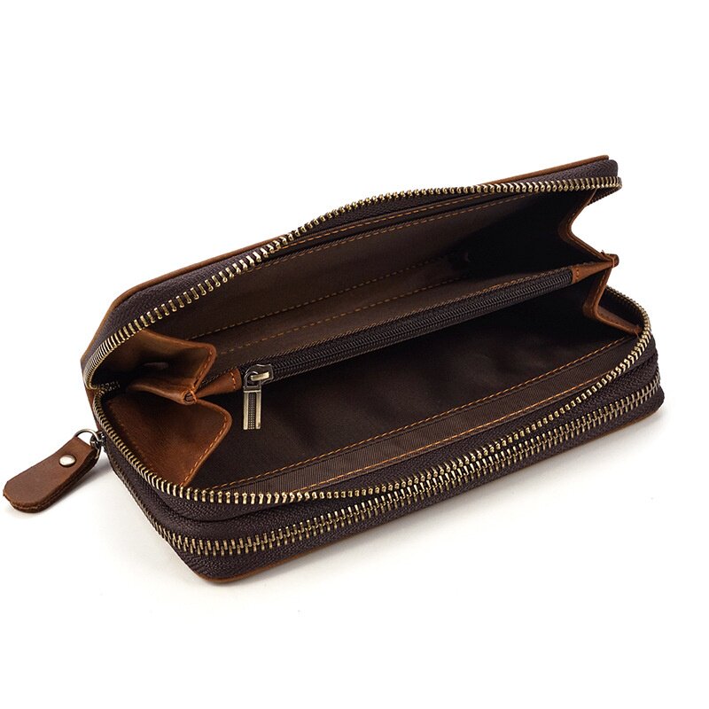 2026春夏男士真皮长款钱包大容量油皮双层拉链钱包头层牛皮手拿