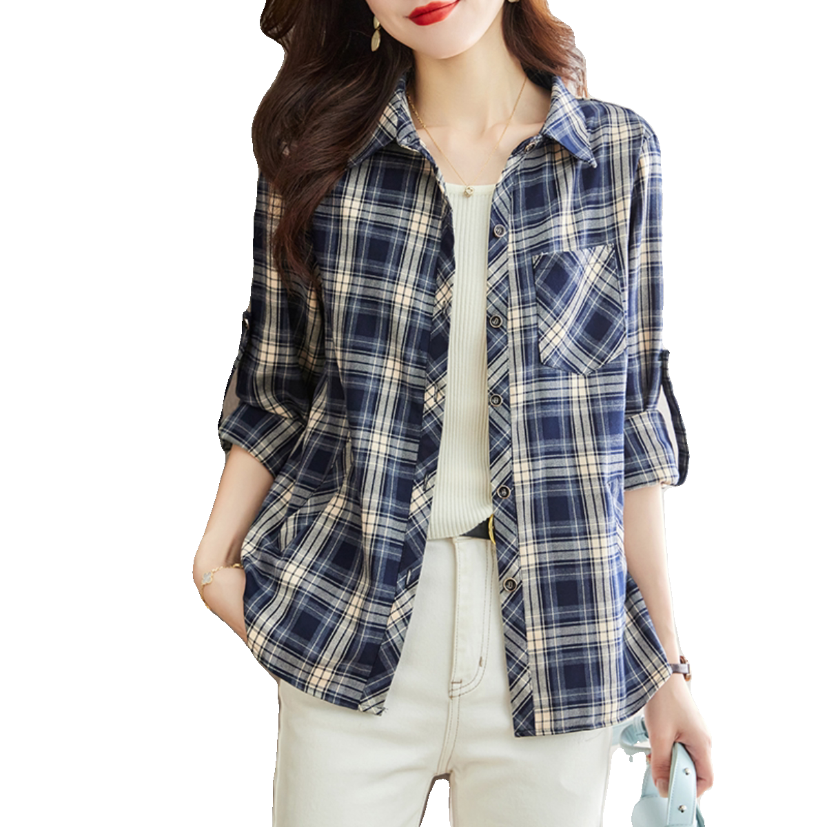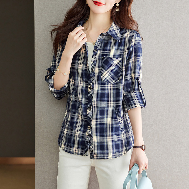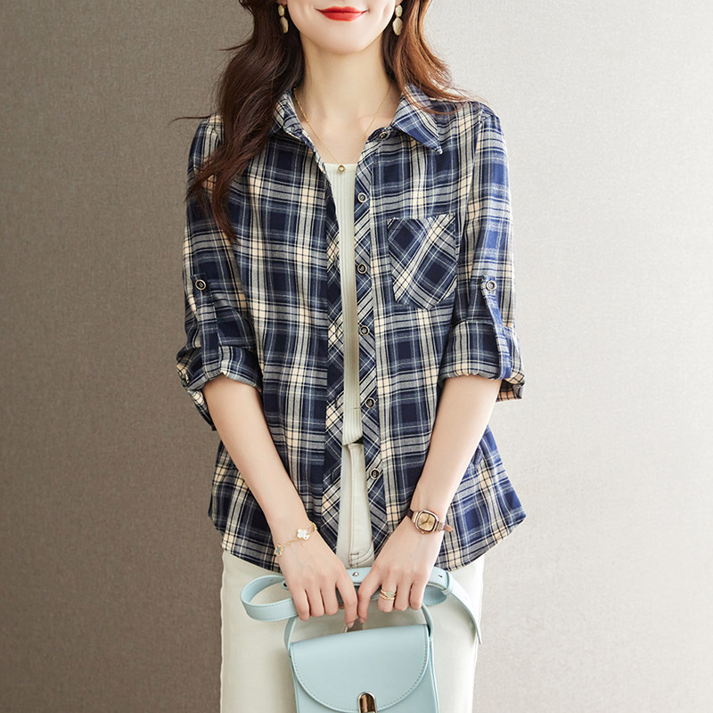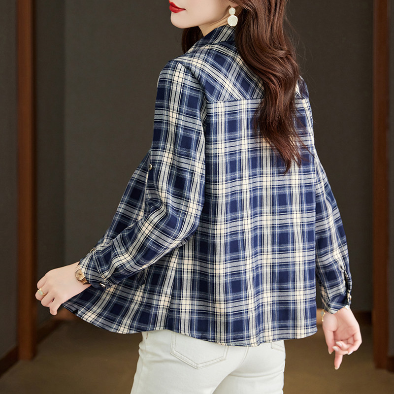 复古格子衬衫女款薄外套2026年秋装新款女士衬衣休闲开衫别致上衣