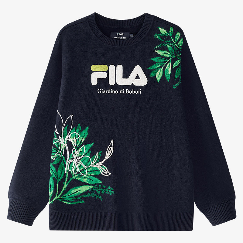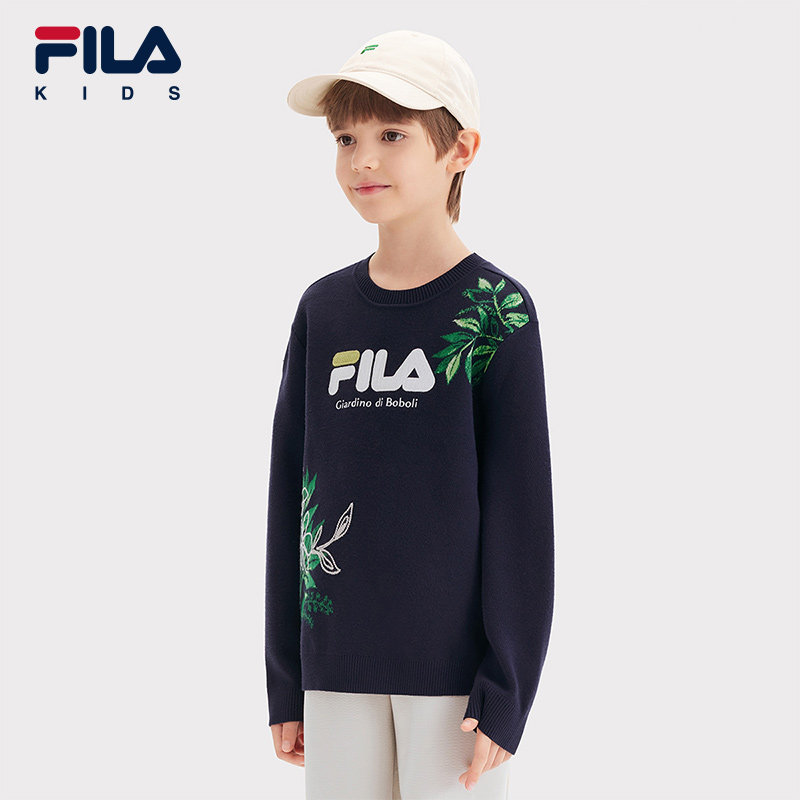 FILA斐乐童装儿童毛衫2025年冬季新款男中大童毛衣时尚编织衫印花