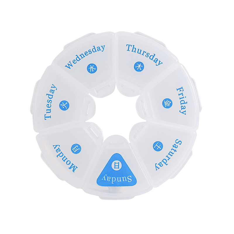 日本圆形七格药丸收纳盒便携式随身旅行小号迷你一周分装药片药盒