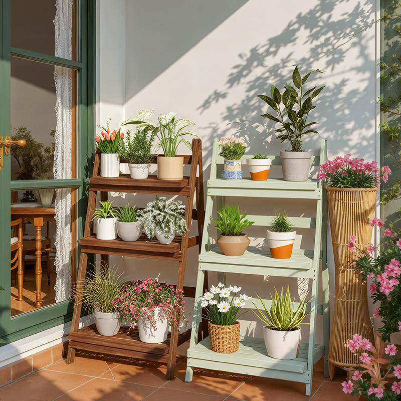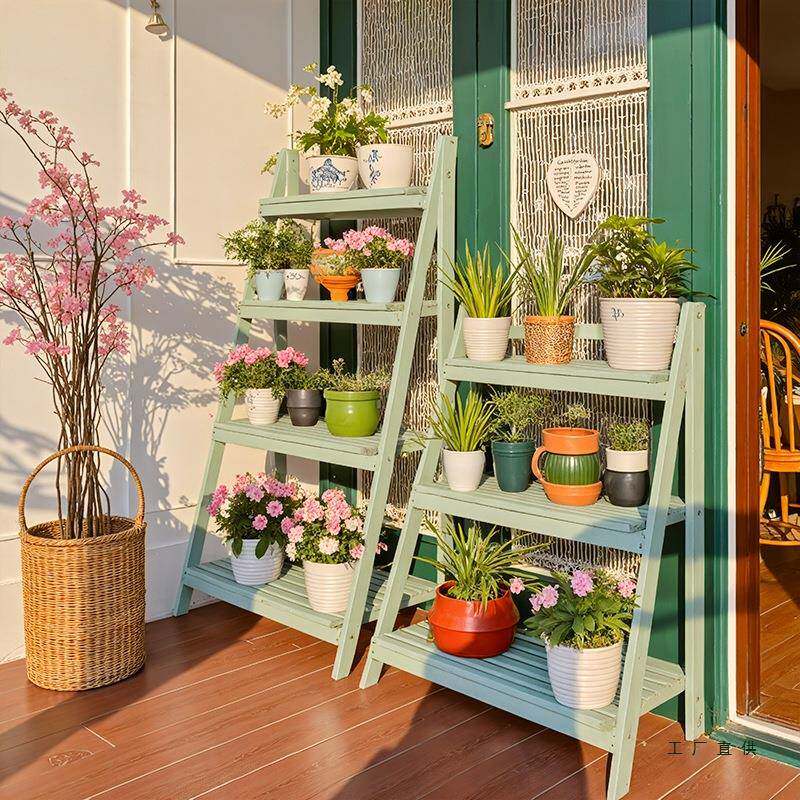 实JAZ木阳台花架子落地式可折叠移动靠阶墙内室多肉梯花盆物植物
