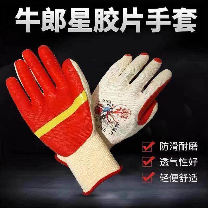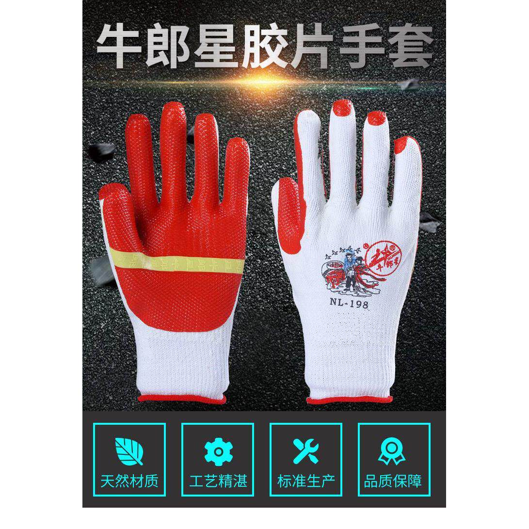 正品牛郎星劳保手套工作耐磨加厚橡胶手套底片防滑防割胶皮工地业