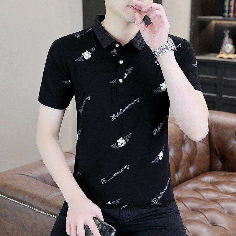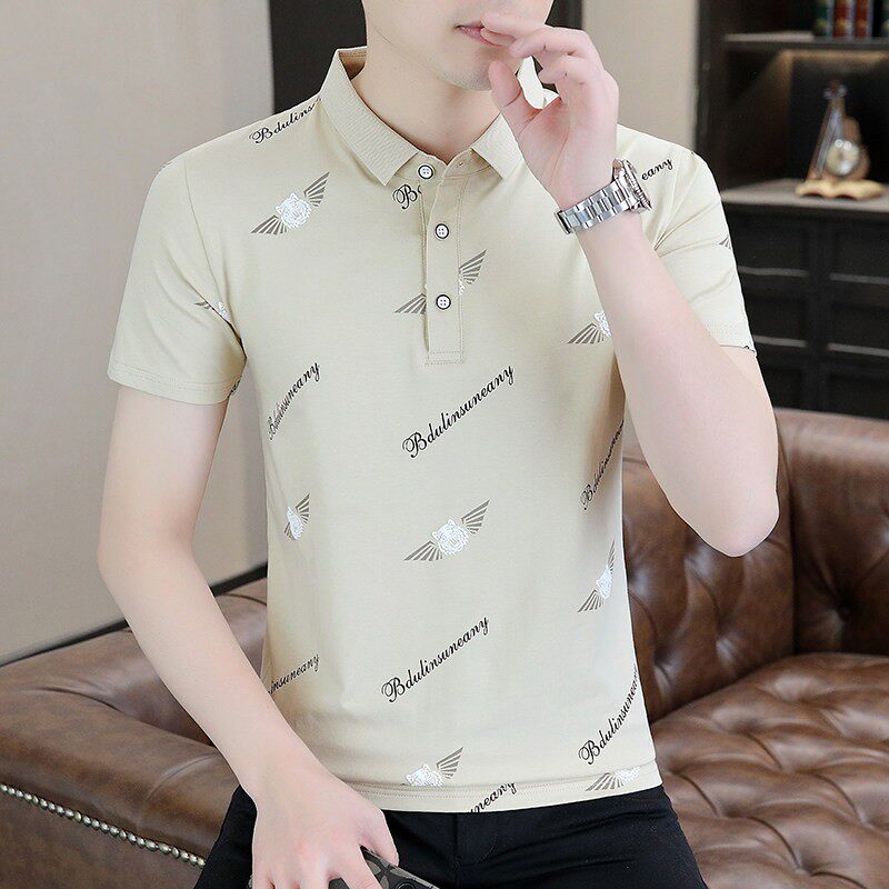 保罗POLO衫男士短袖t恤冰丝感衬衫领领夏季商务潮牌高端纯棉半袖