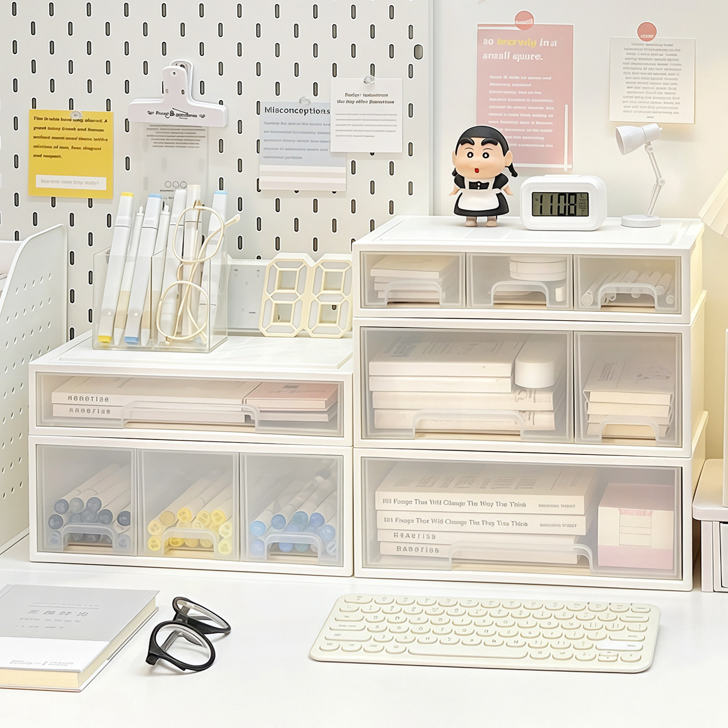 桌面收纳盒抽屉式学生宿舍书桌文具整理盒大容量办公室工位置物架