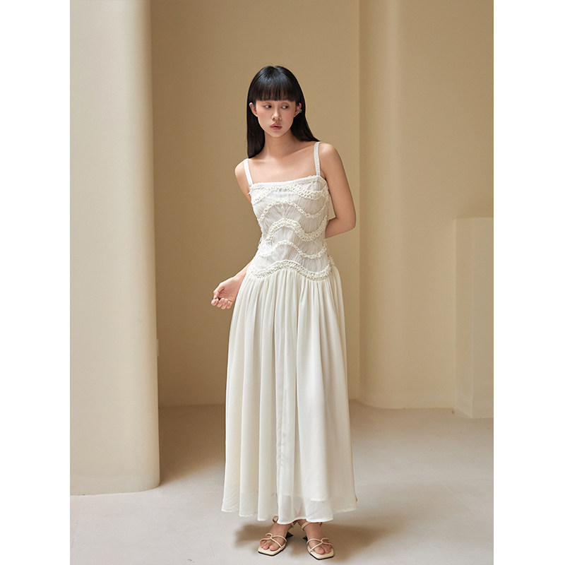 签儿夏季法式吊带蕾丝重工连衣裙女温柔风云南海边度假绝美长裙子