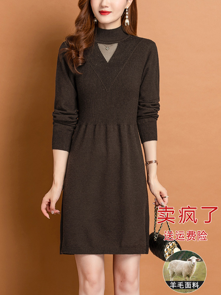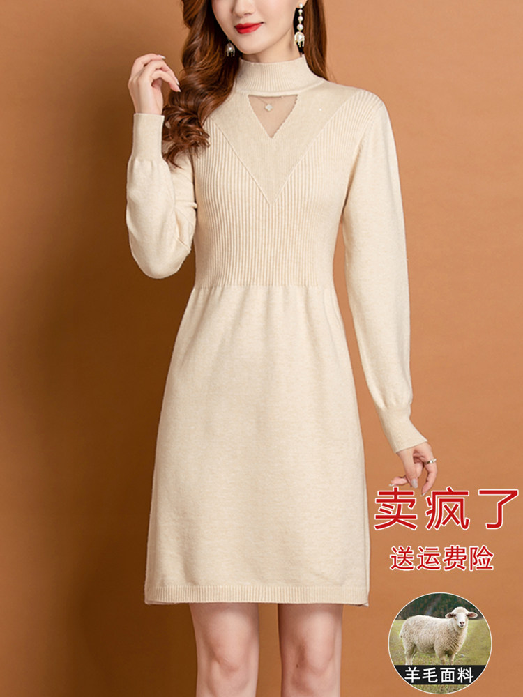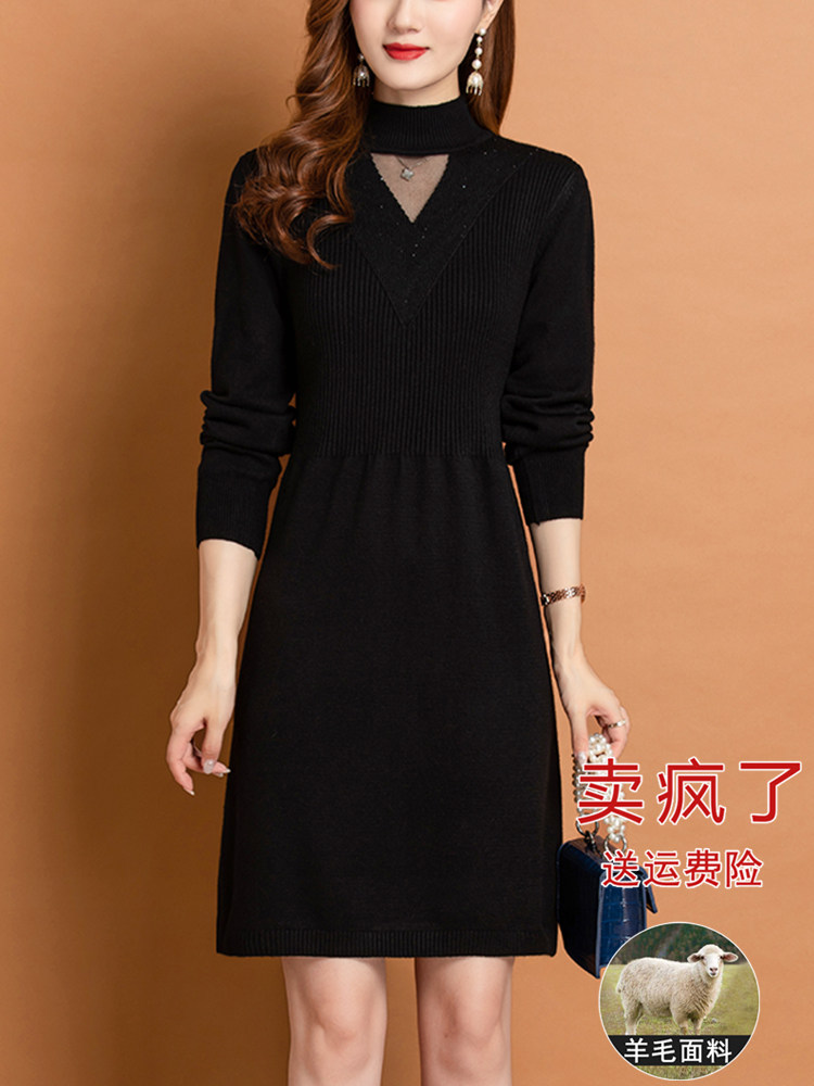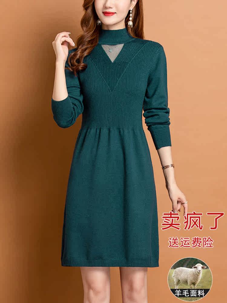 羊绒毛衣裙女中长款内搭秋冬季配大衣洋气打底衫小个子羊毛连衣裙