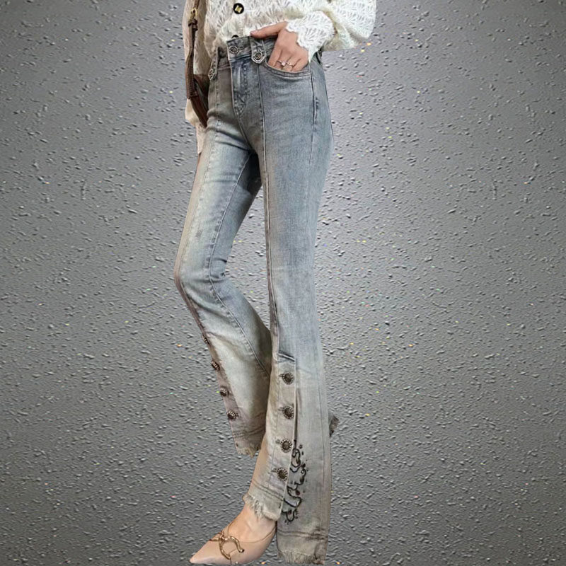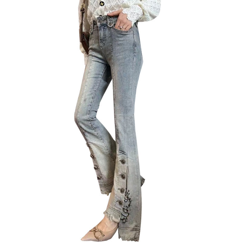 2026早春新款微喇牛仔裤女小个子高腰显瘦不规则开叉喇叭长裤子