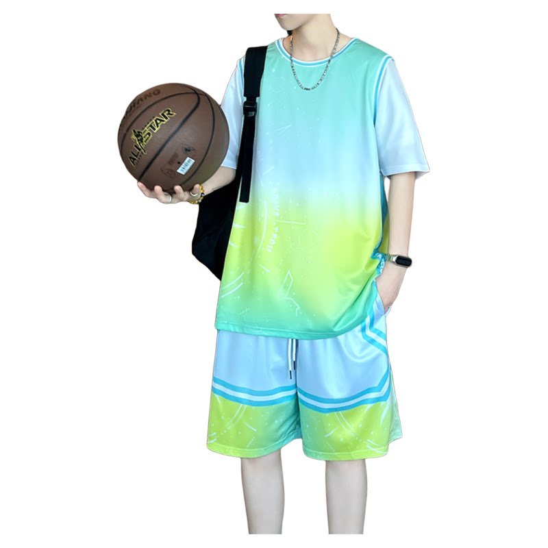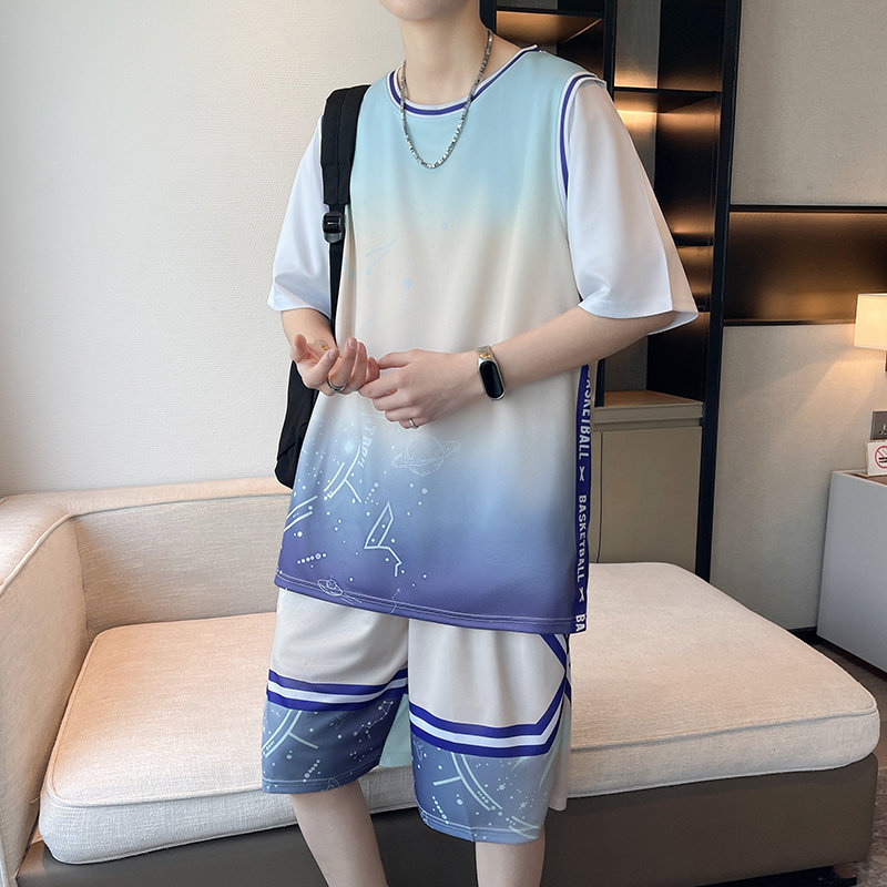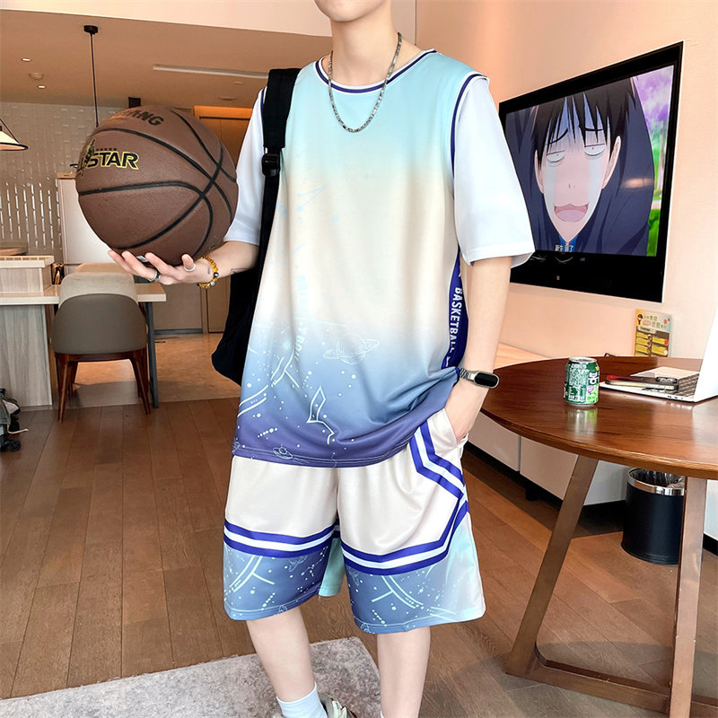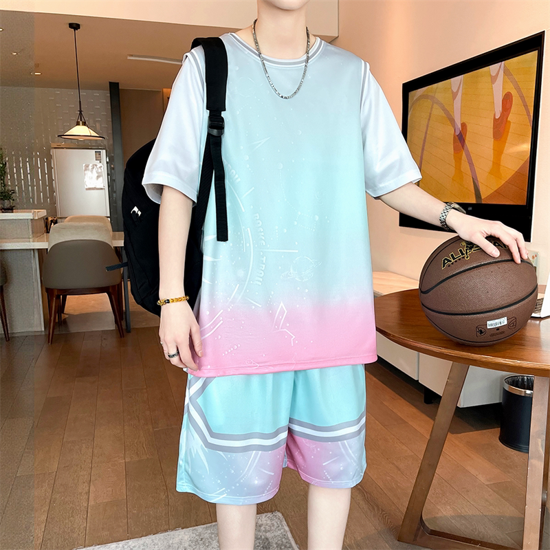 夏季新款短袖t恤男孩青少年中学生冰丝大童运动短裤套装篮球衣服