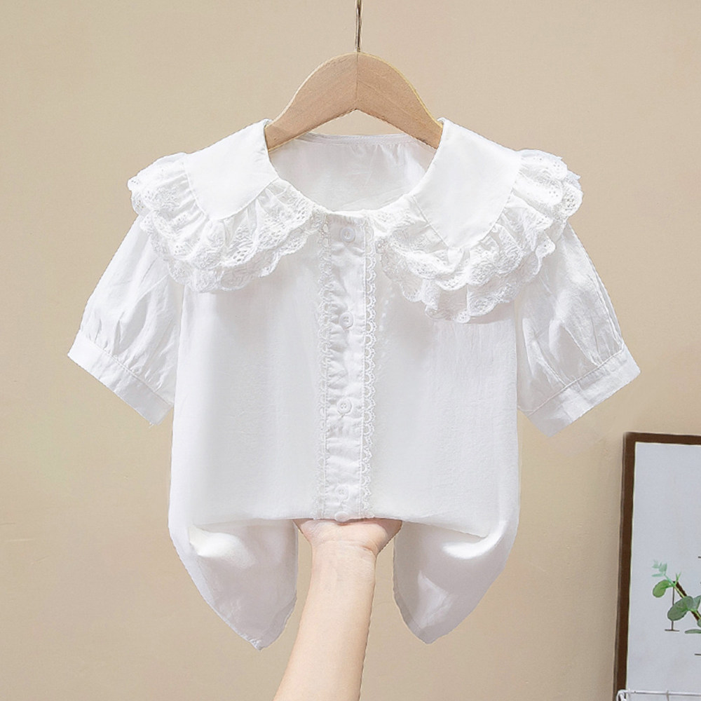 女童短袖衬衫夏天夏装大儿童纯棉白色衬衣T恤6女孩夏季娃娃领上衣