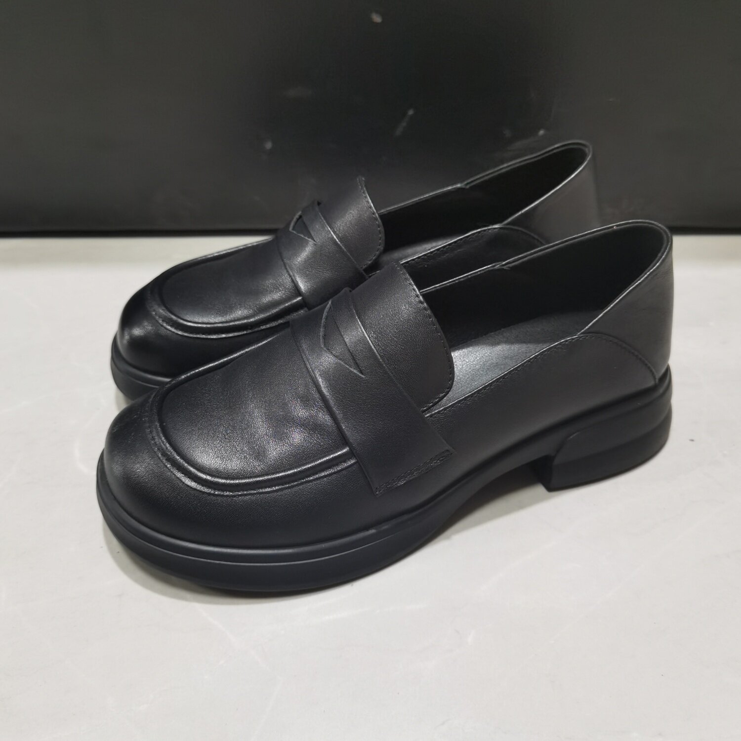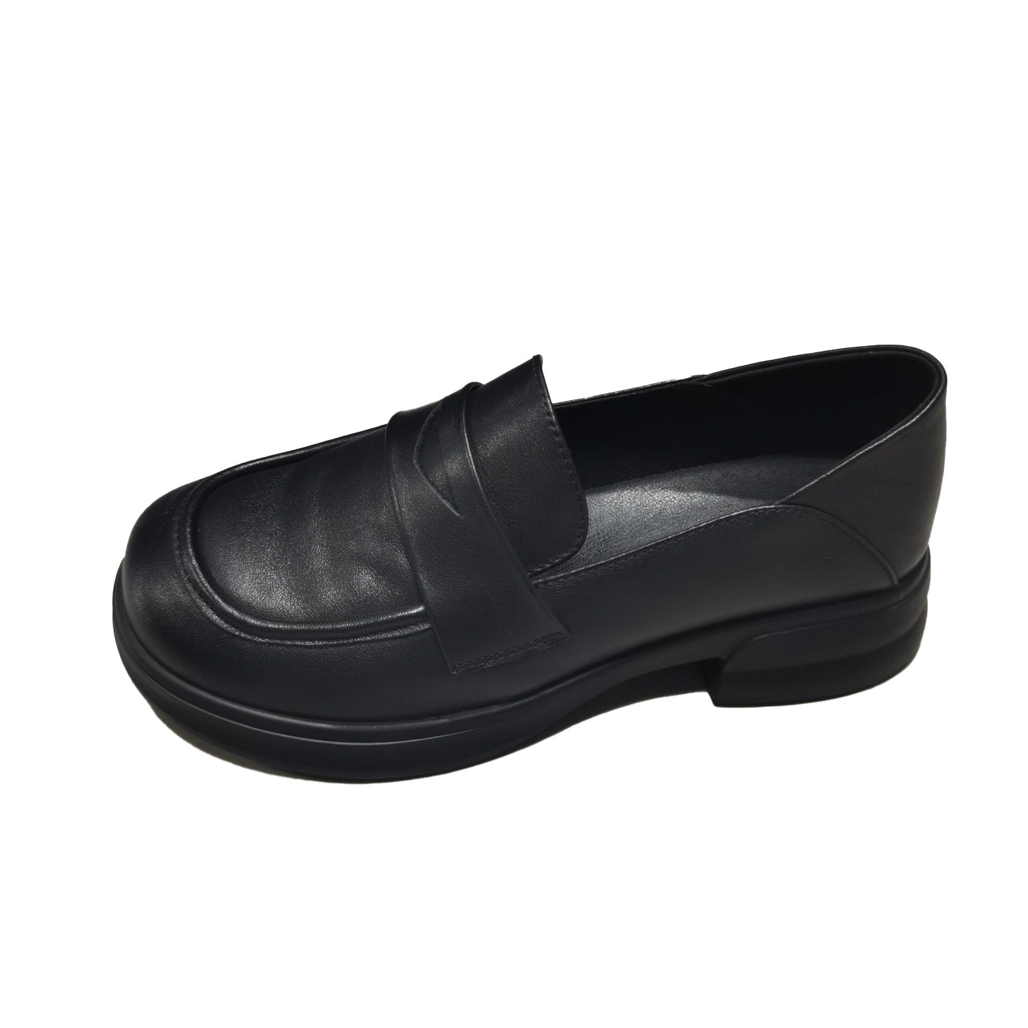 休闲风真皮乐福鞋女春季新款黑色圆头一脚蹬百搭日常通勤单鞋舒适