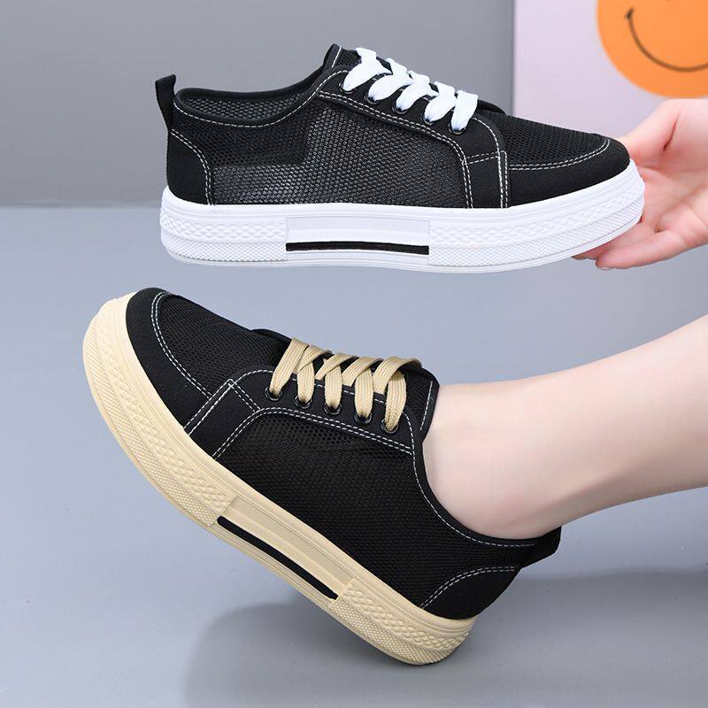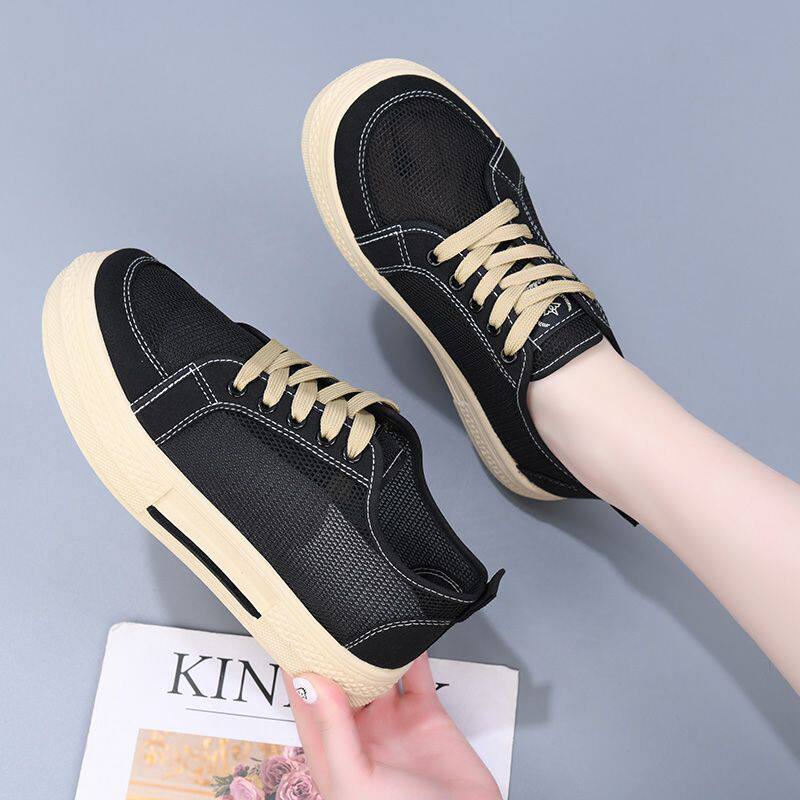 凉鞋女透气网面小白鞋女夏季薄款网眼帆布鞋百搭厚底镂空运动网鞋