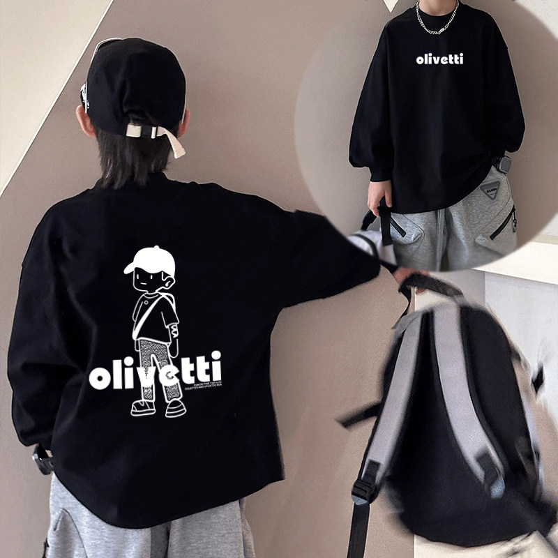 (实体品质)100%纯棉男童长袖t恤春秋款婴儿童装中大童内搭打底衫