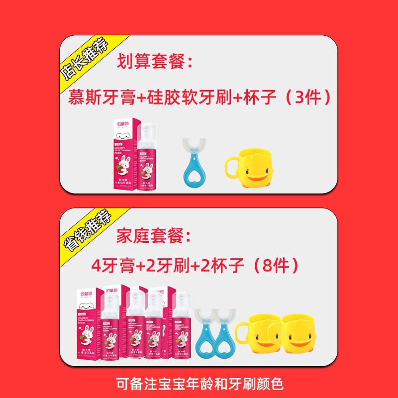 儿童牙膏1一2宝宝0到3一6一12岁可防蛀防吞咽慕斯泡沫无氟洁牙刷