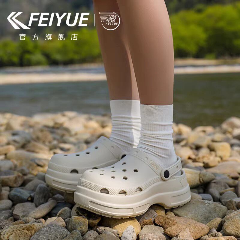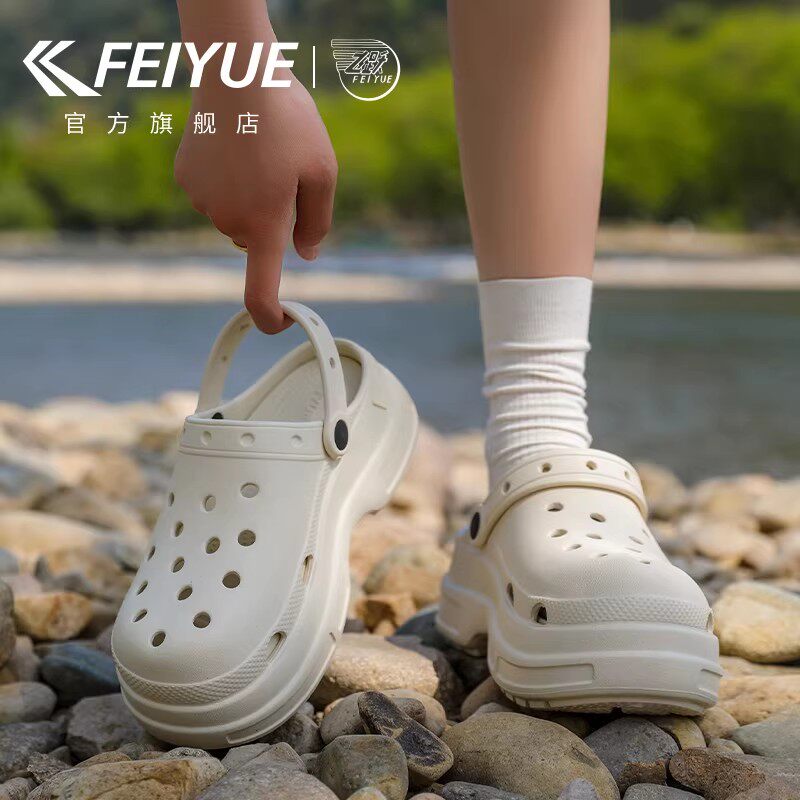 feiyue/飞跃洞洞鞋女鞋2026年春夏季新款凉拖沙滩鞋户外厚底凉鞋