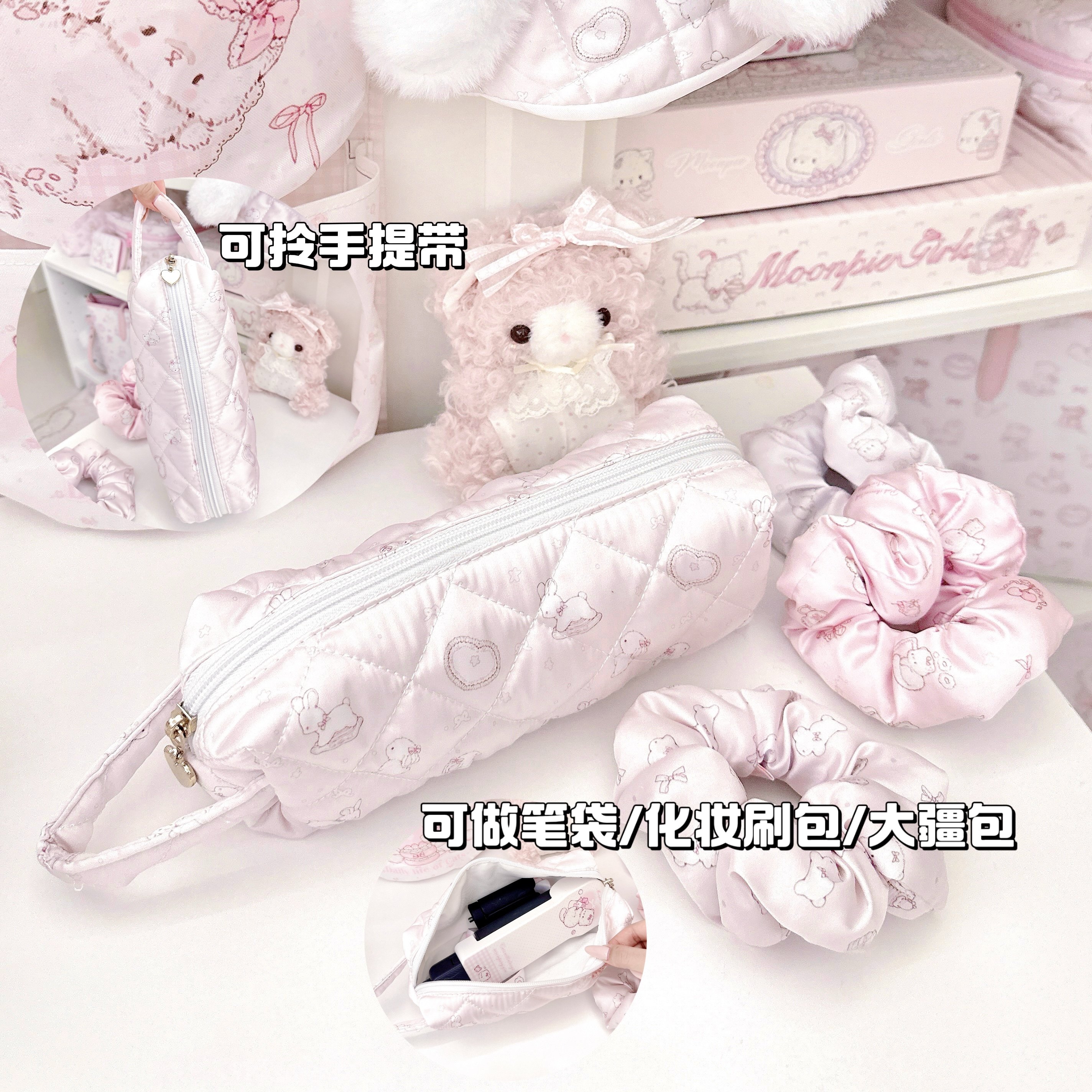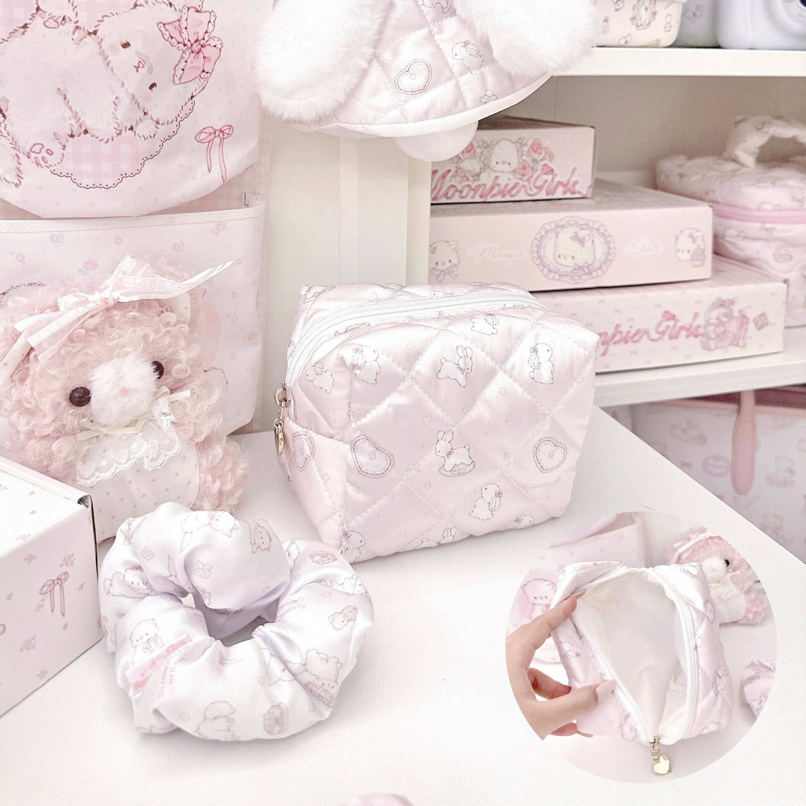 MG原创化妆包兔兔绸缎高颜值补妆包大容量便携手提旅行收纳包笔袋