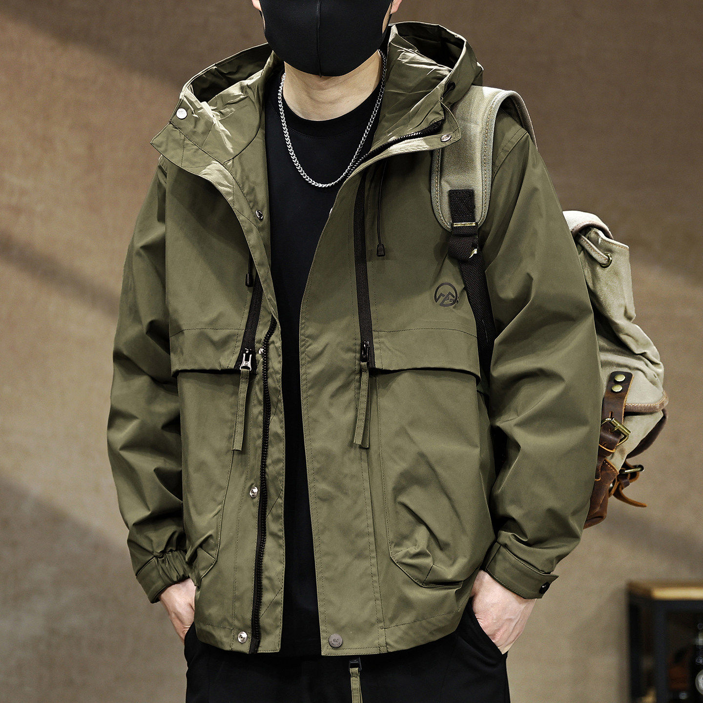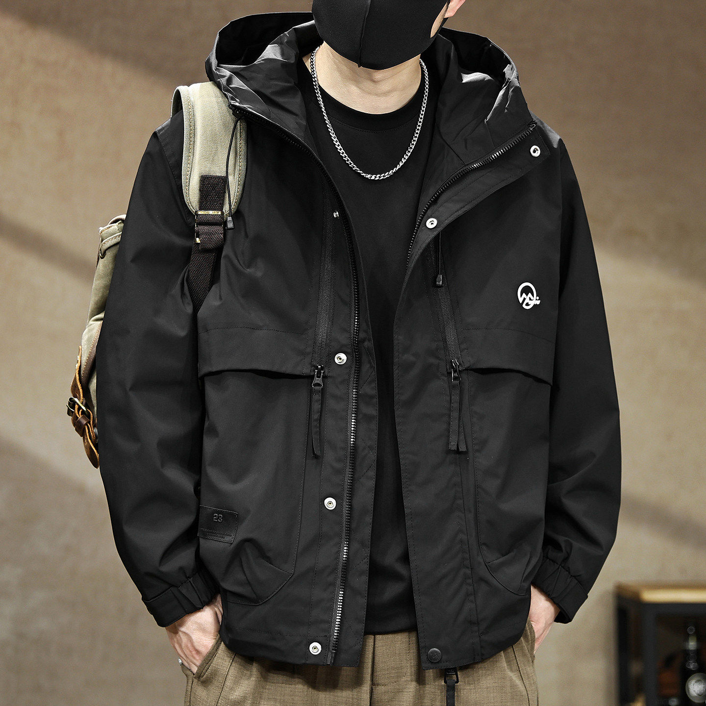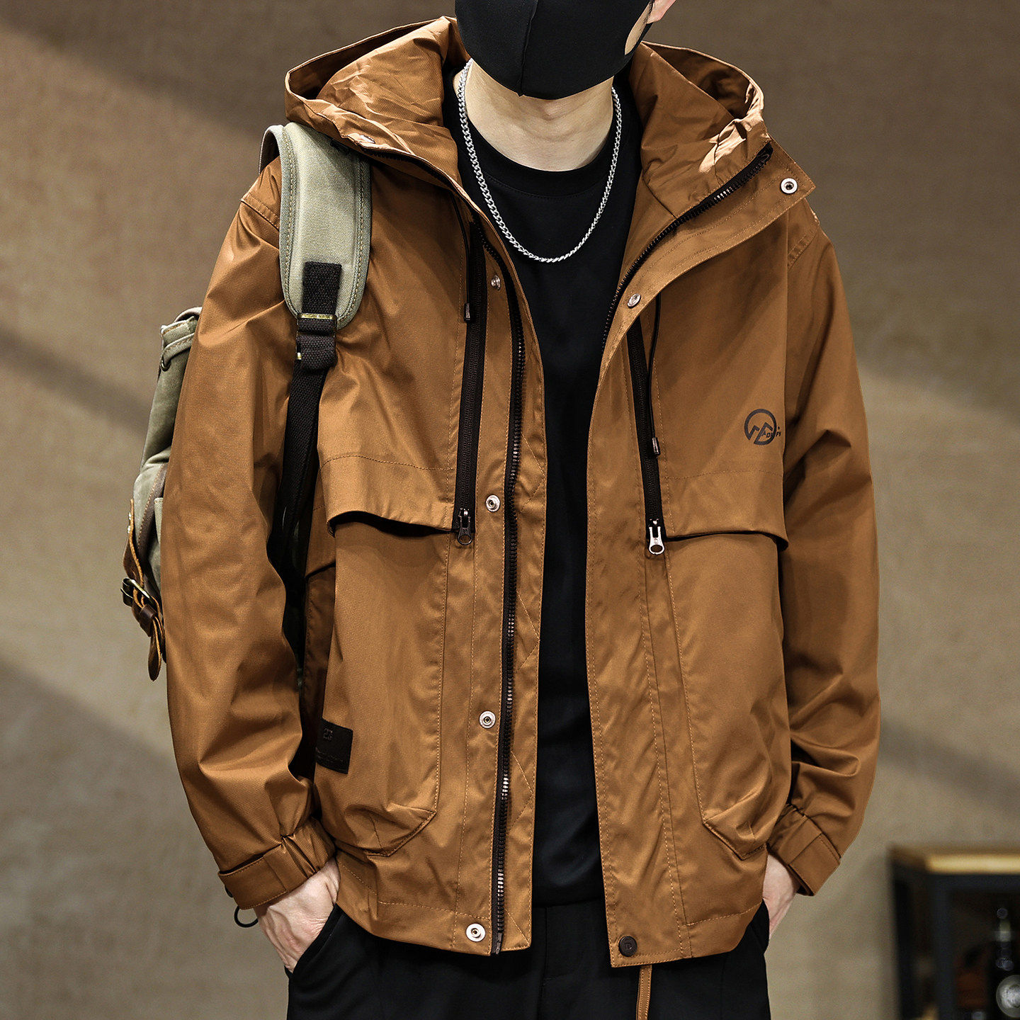 2026春季新款户外连帽冲锋外套男士潮牌宽松大码工装夹克男款上衣