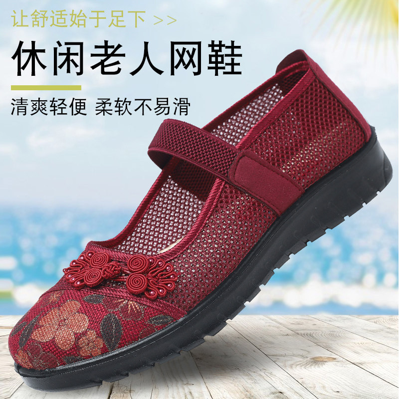 网纱老北京布鞋女款一脚蹬奶奶鞋舒适妈妈鞋防滑透气老人网面鞋子