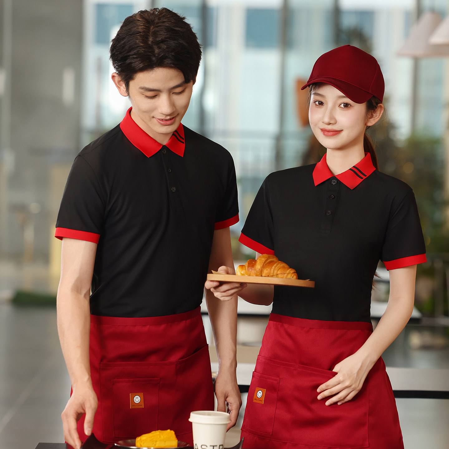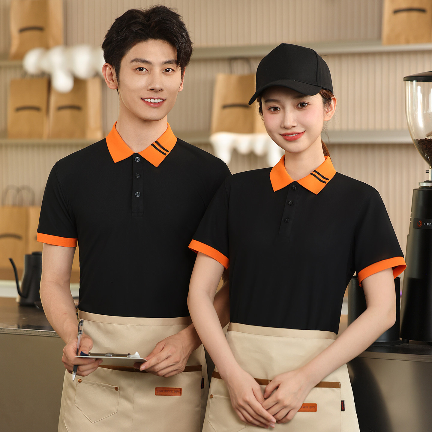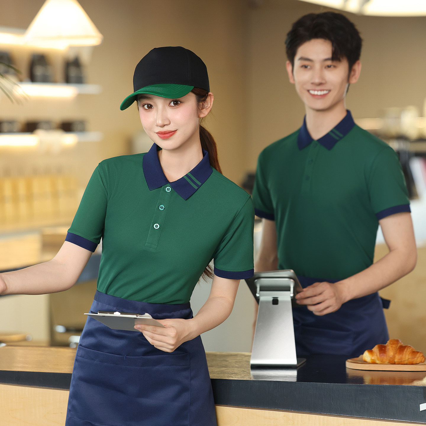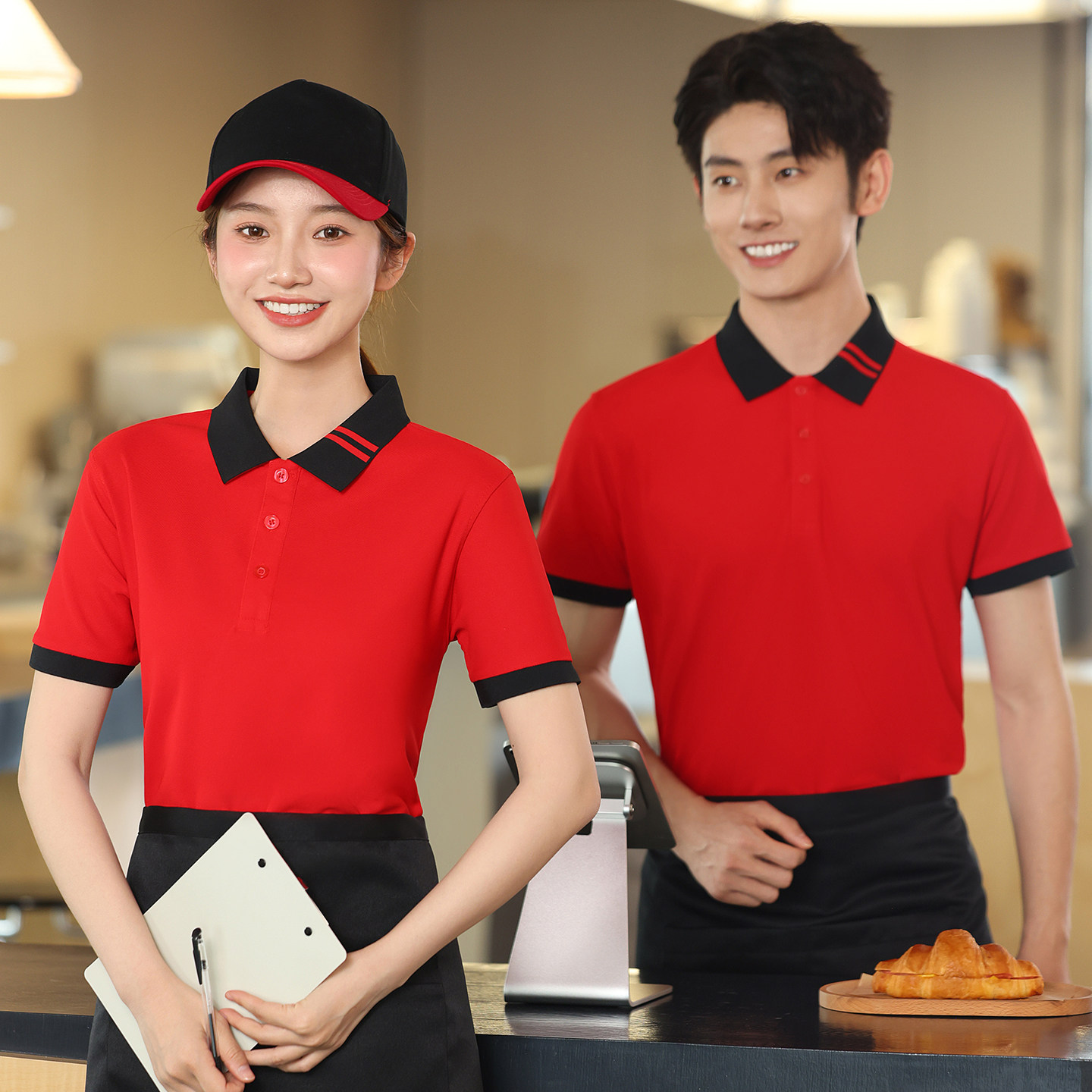 餐饮工作服定制印logo夏季polo衫短袖咖啡厅奶茶店服务员工装t恤