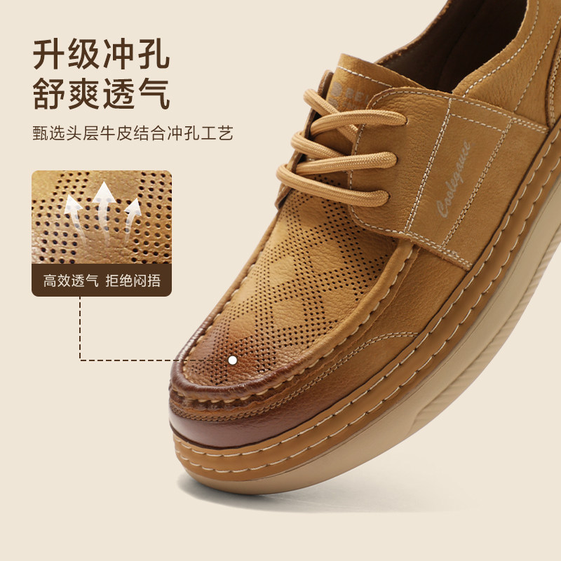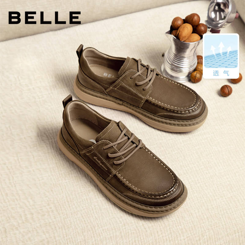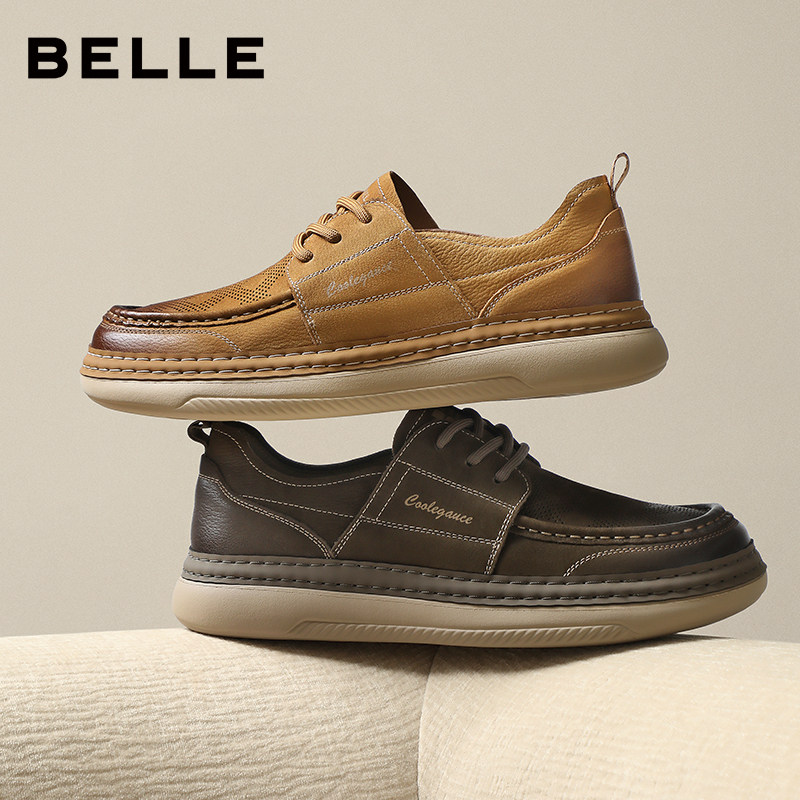 百丽男鞋工装板鞋夏季透气牛皮软底勃肯休闲吐司增高皮鞋A1864AM5