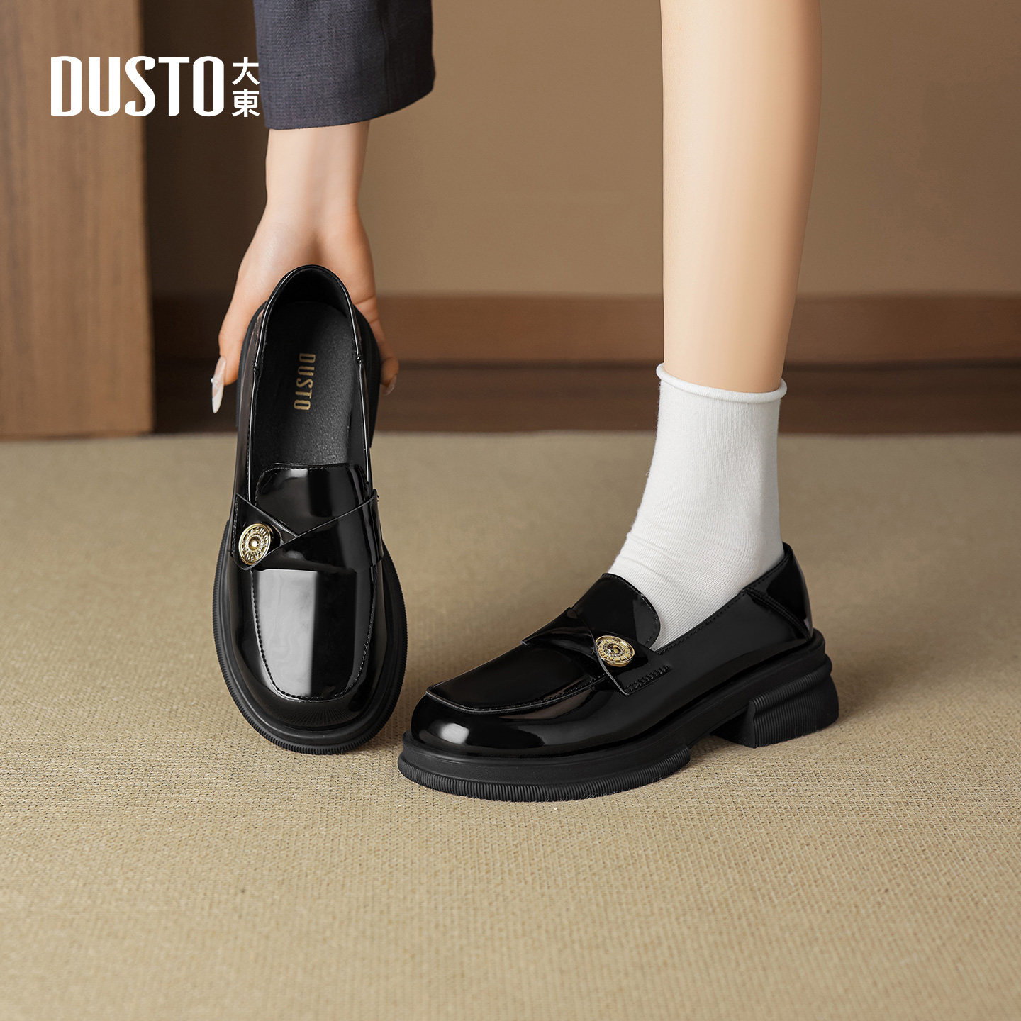 大东dd厚底乐福鞋女2026新款春季女鞋通勤不累脚英伦风浅口单鞋