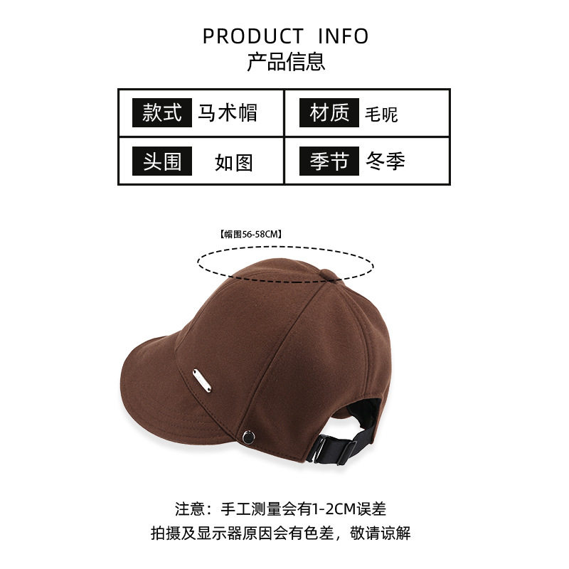 秋冬毛呢渔夫帽女简约字母显脸小升级版鸭舌帽学生时尚保暖马术帽