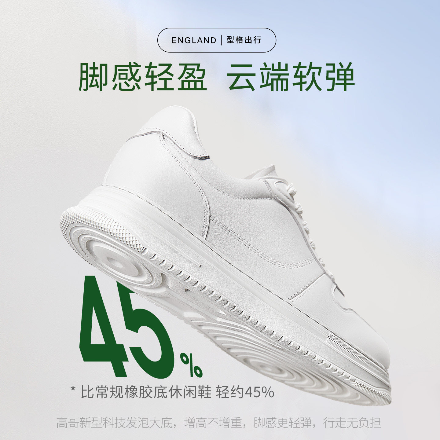 高哥增高小白鞋男款2026新款男鞋子头层牛皮休闲鞋隐形内增高板鞋