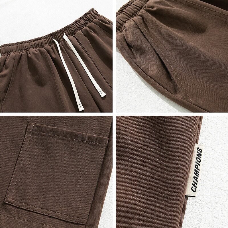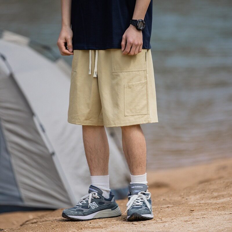 日系潮牌纯棉工装短裤男款夏季新款抽绳松紧腰加肥大码潮流五分裤