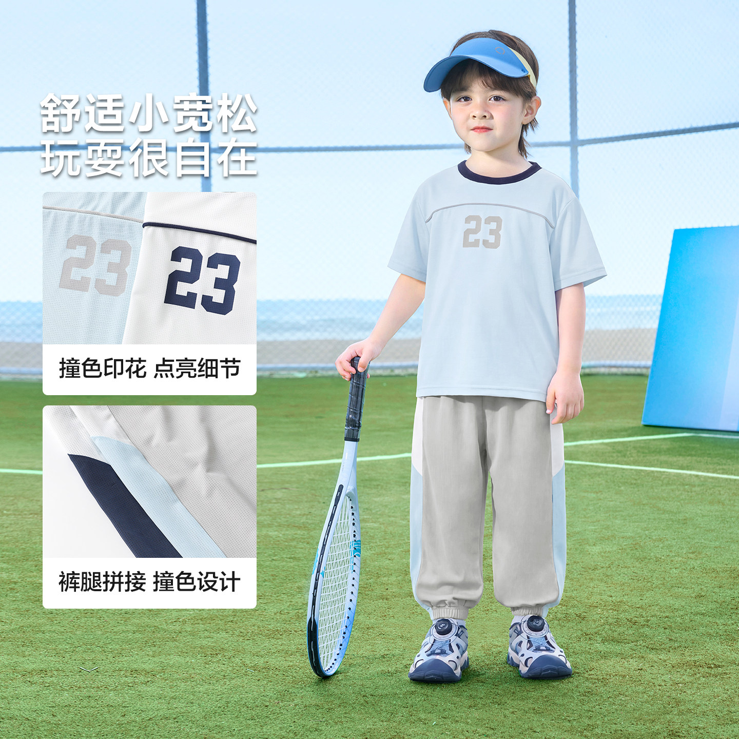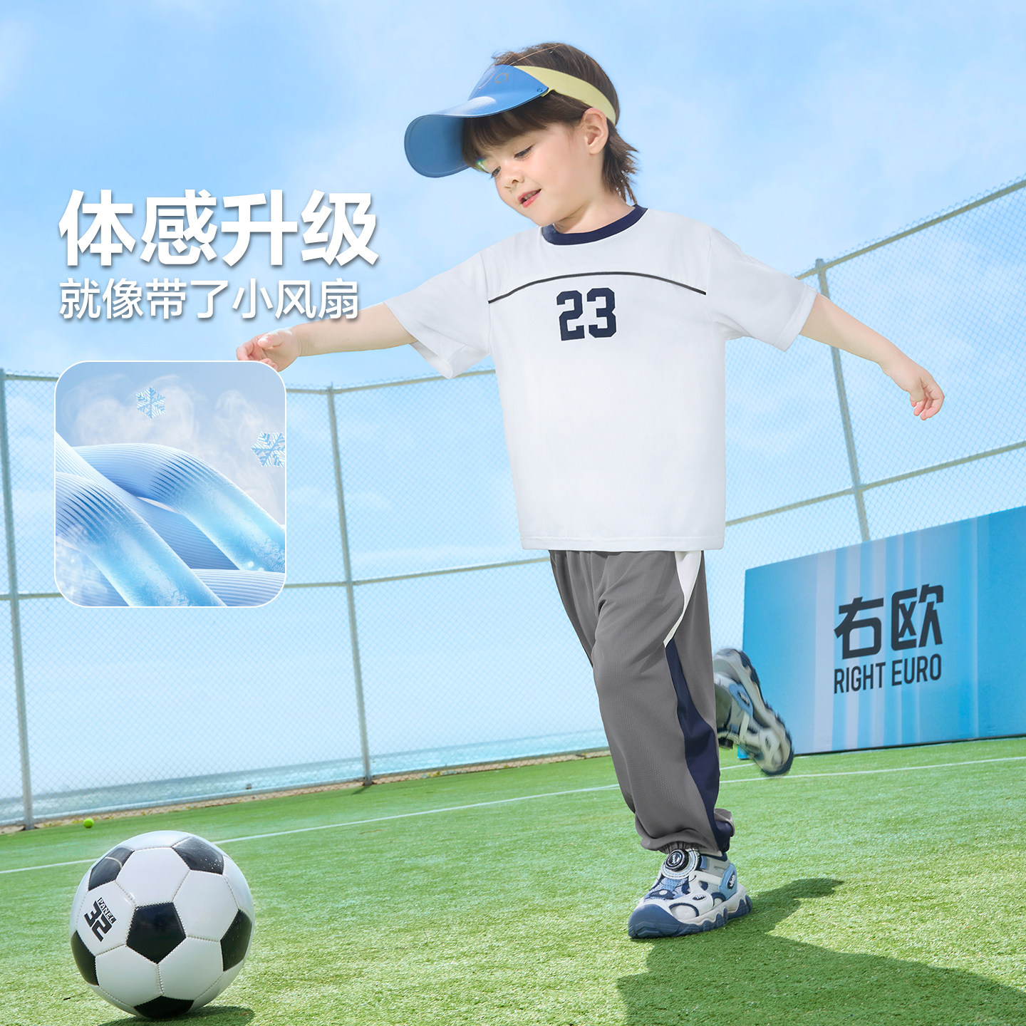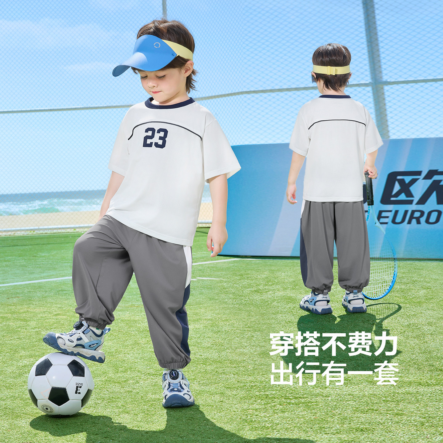右欧儿童休闲薄款套装男童女童短袖T恤运动裤两件套夏季新款童装