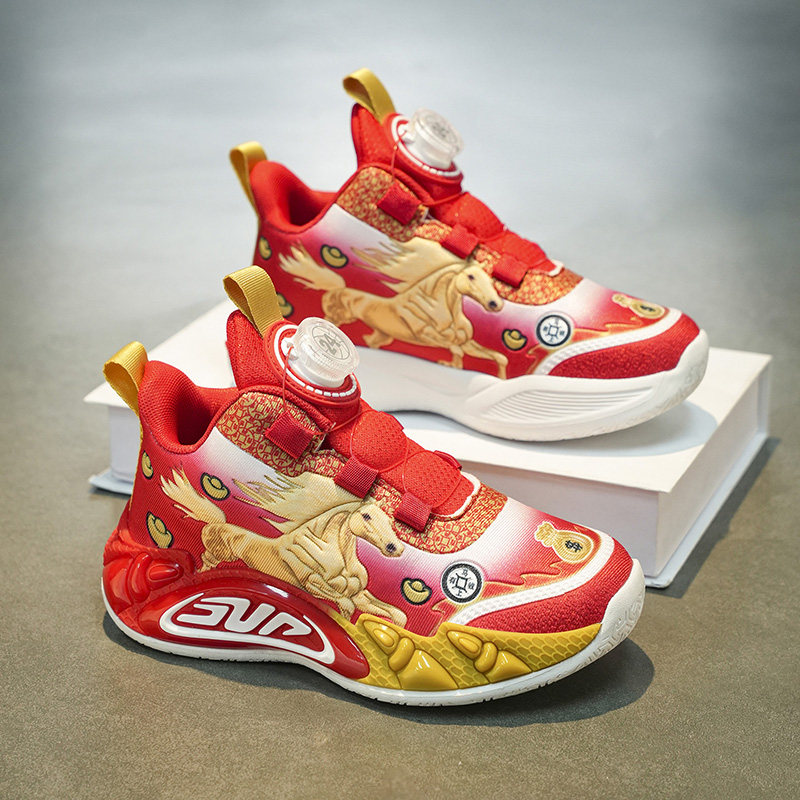 炫酷紫男女童网面跑鞋春季2026新款马年红色儿童运动鞋男孩篮球鞋