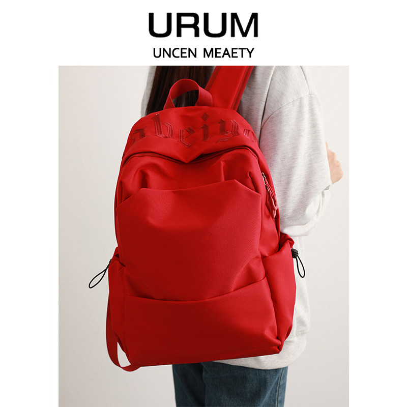 URUM简约纯色高中学生书包女2025新款男大容量双肩包短途旅行背包