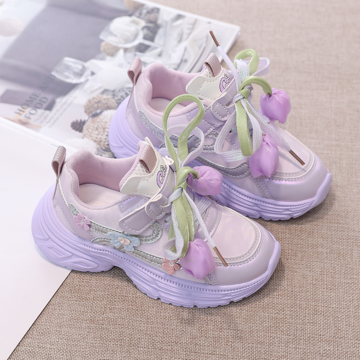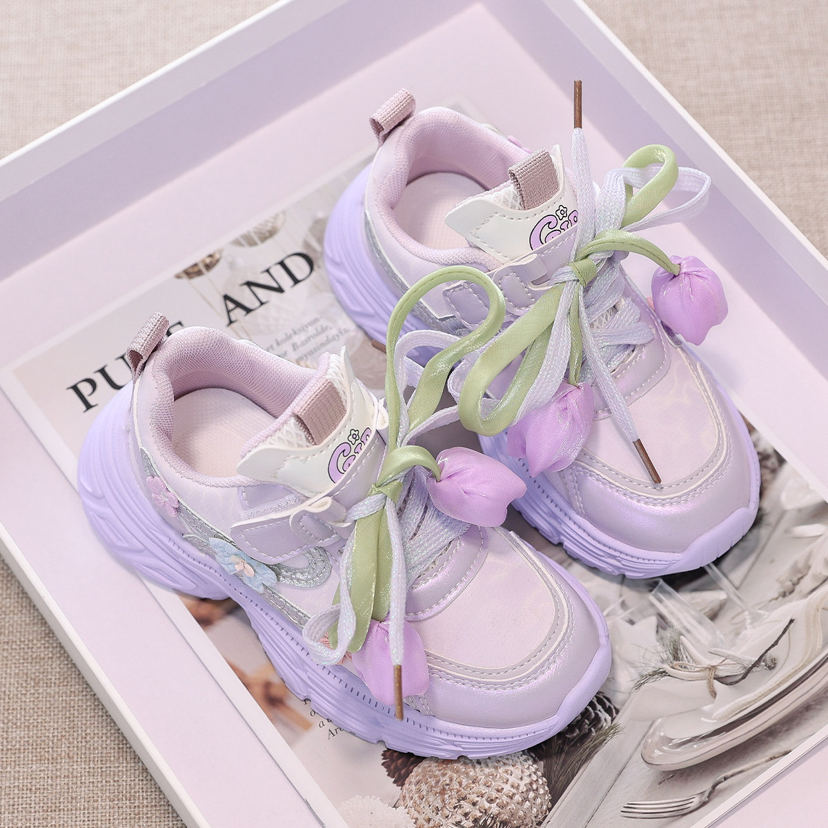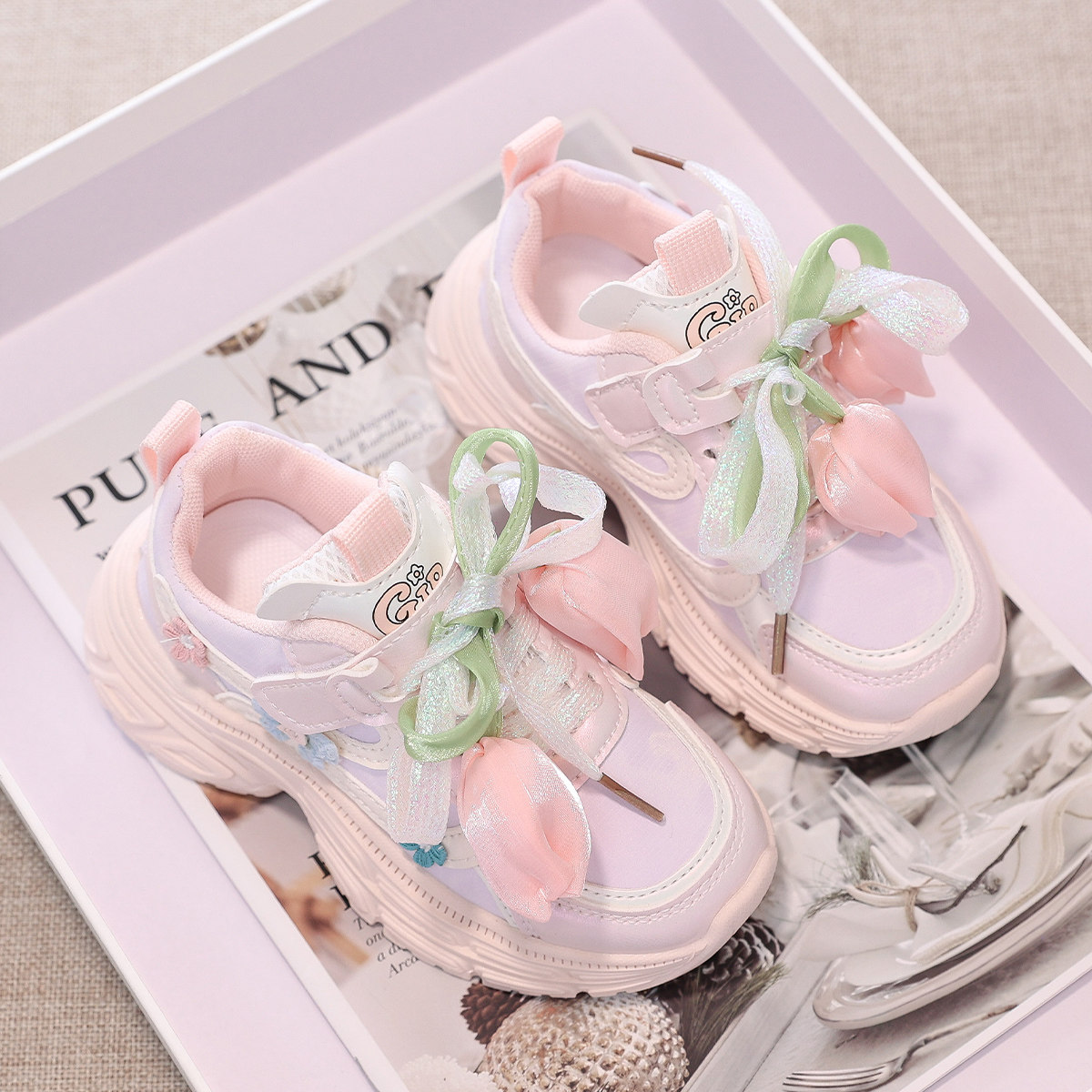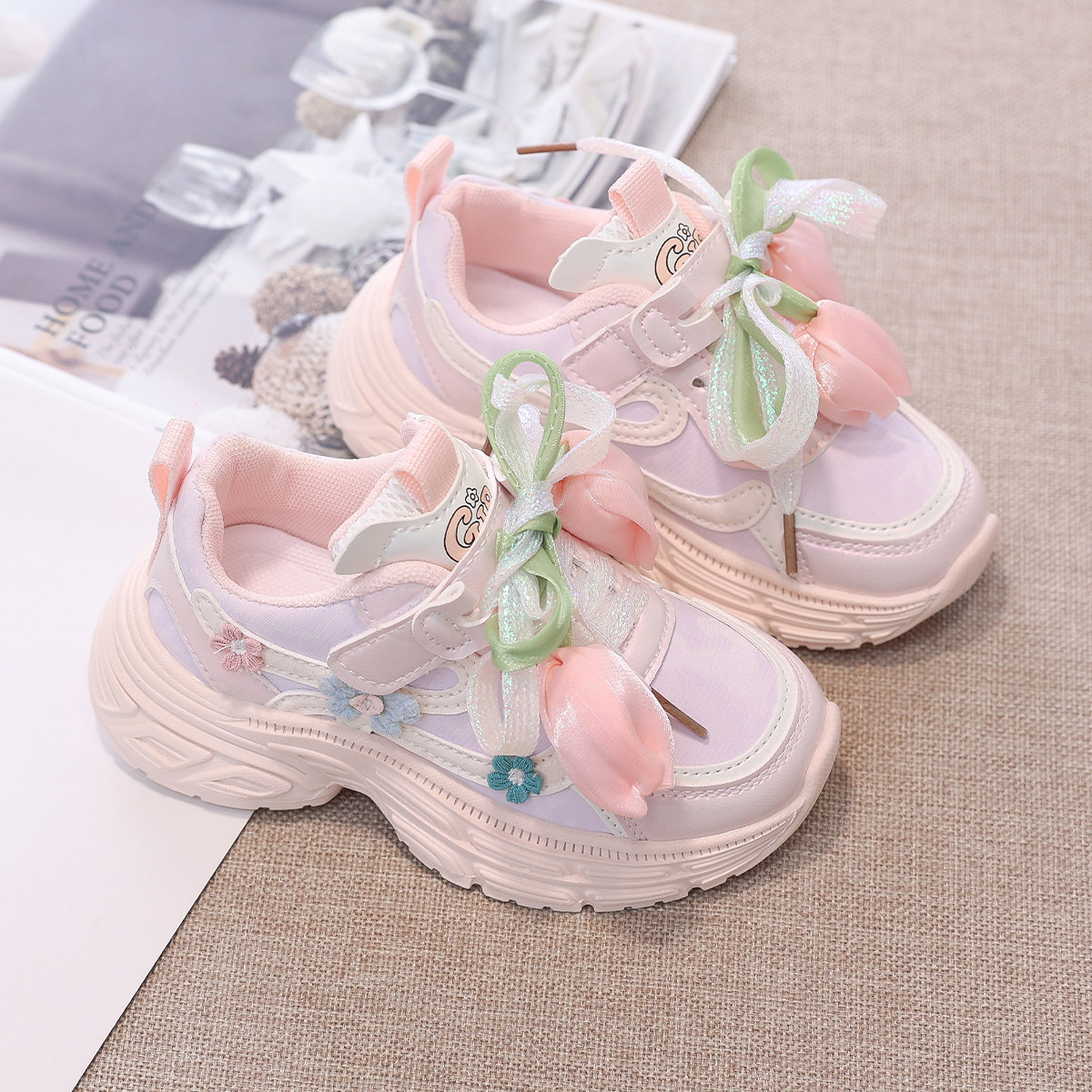 女童软底轻便运动鞋2026春秋新款甜美郁金香装饰女款中大童老爹鞋