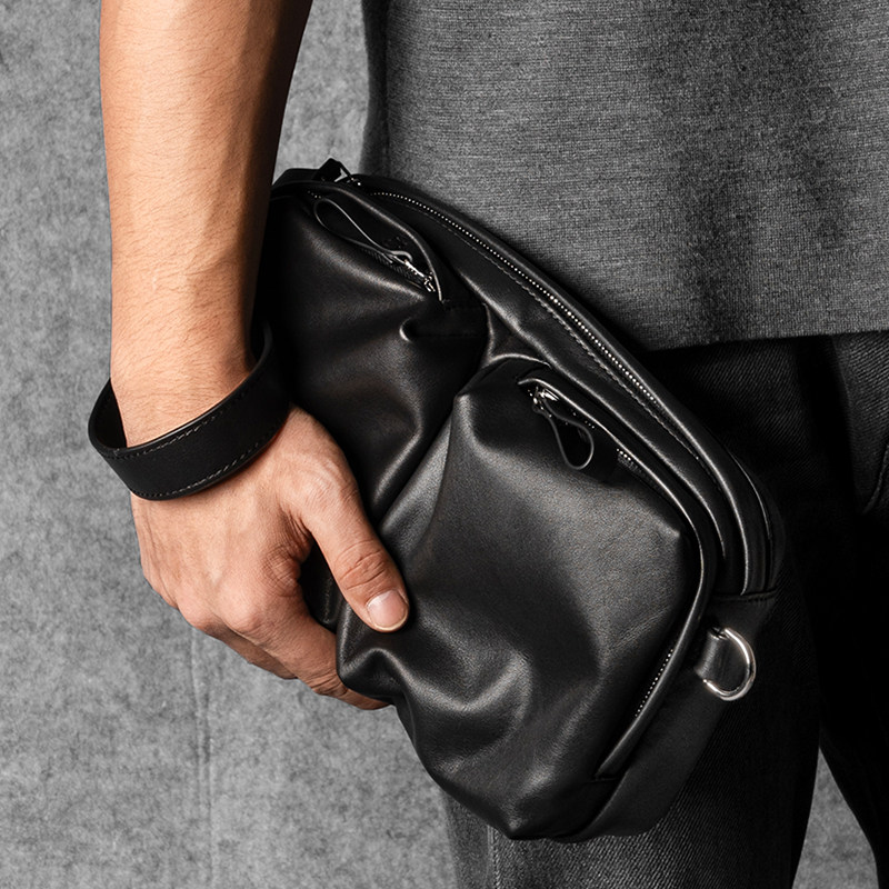 吉卡尼 牛皮斜挎包男士高级感小包真皮手包通勤邮差包单肩随身包