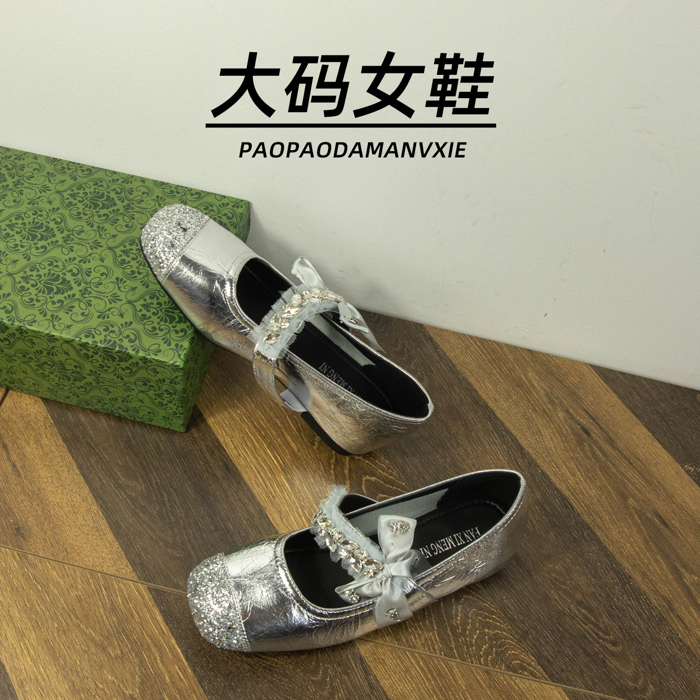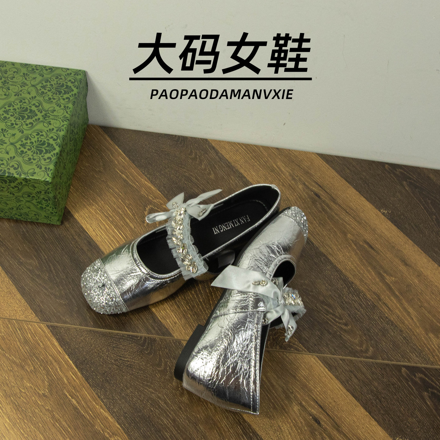 大码女鞋41到42宽脚胖法式单鞋蝴蝶结水钻内增高银色玛丽珍鞋2025