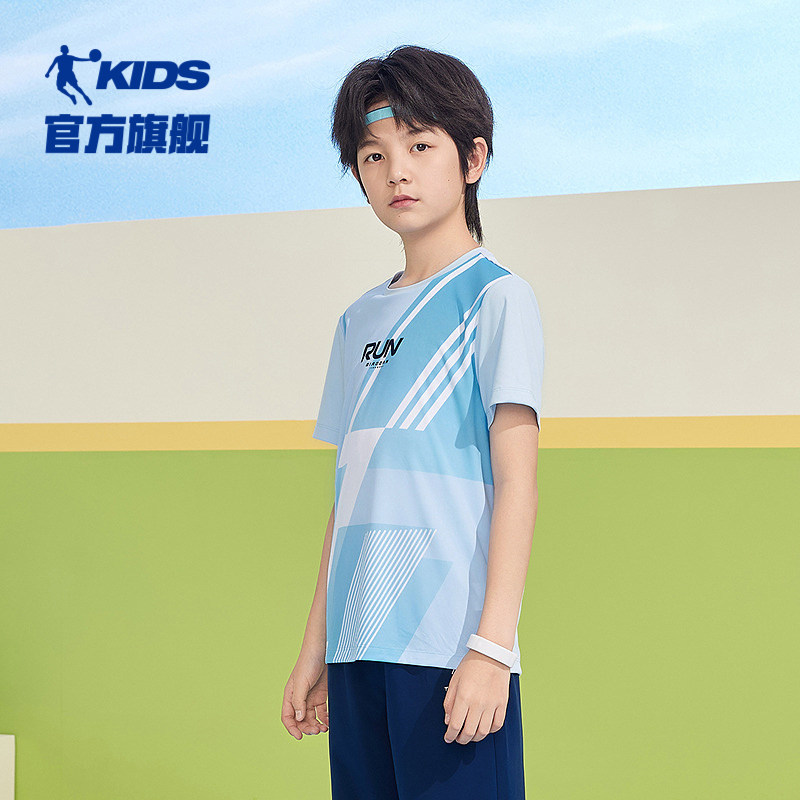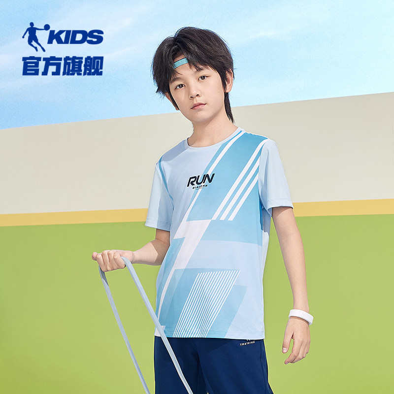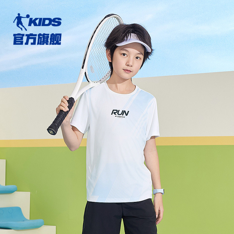 乔丹童装男童短袖t恤2026新款大童运动速干上衣跑步短T儿童夏装