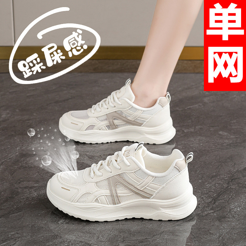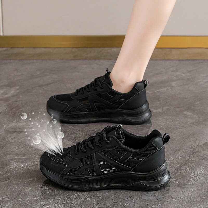 踩屎感黑色厚底老爹鞋女款2026新款夏季单网轻便不累脚防滑工作鞋