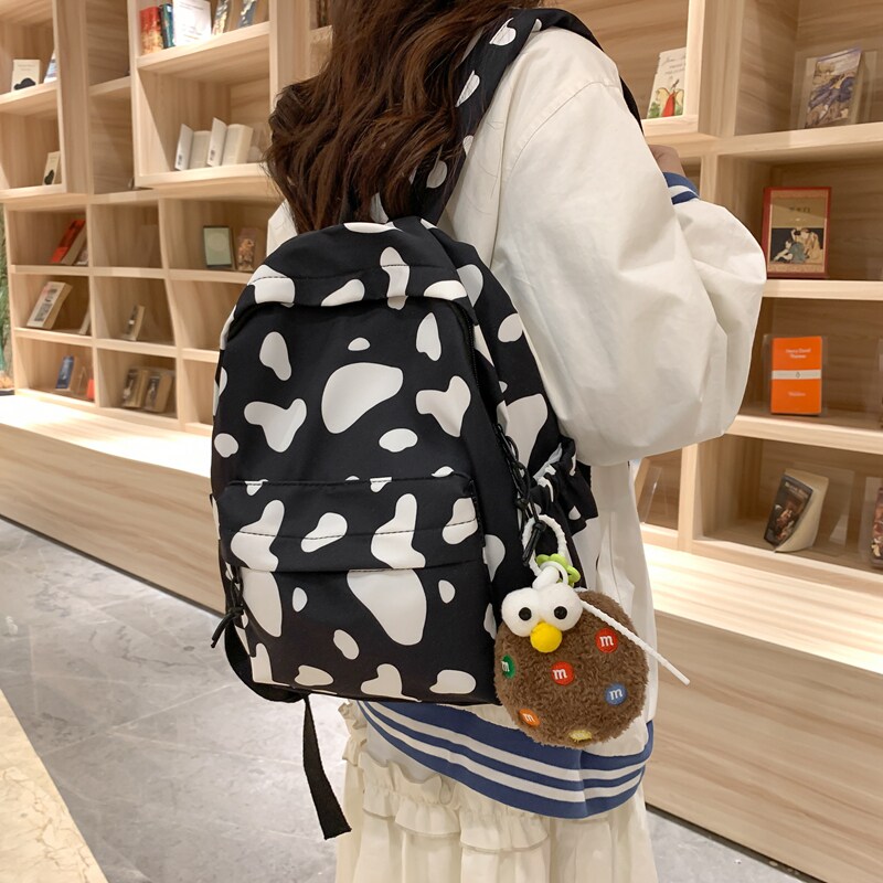 双肩包小号轻便逛街个性奶牛印花小书包儿童出游百搭小背包妈咪包