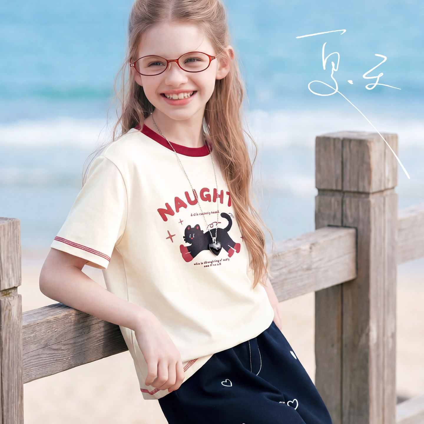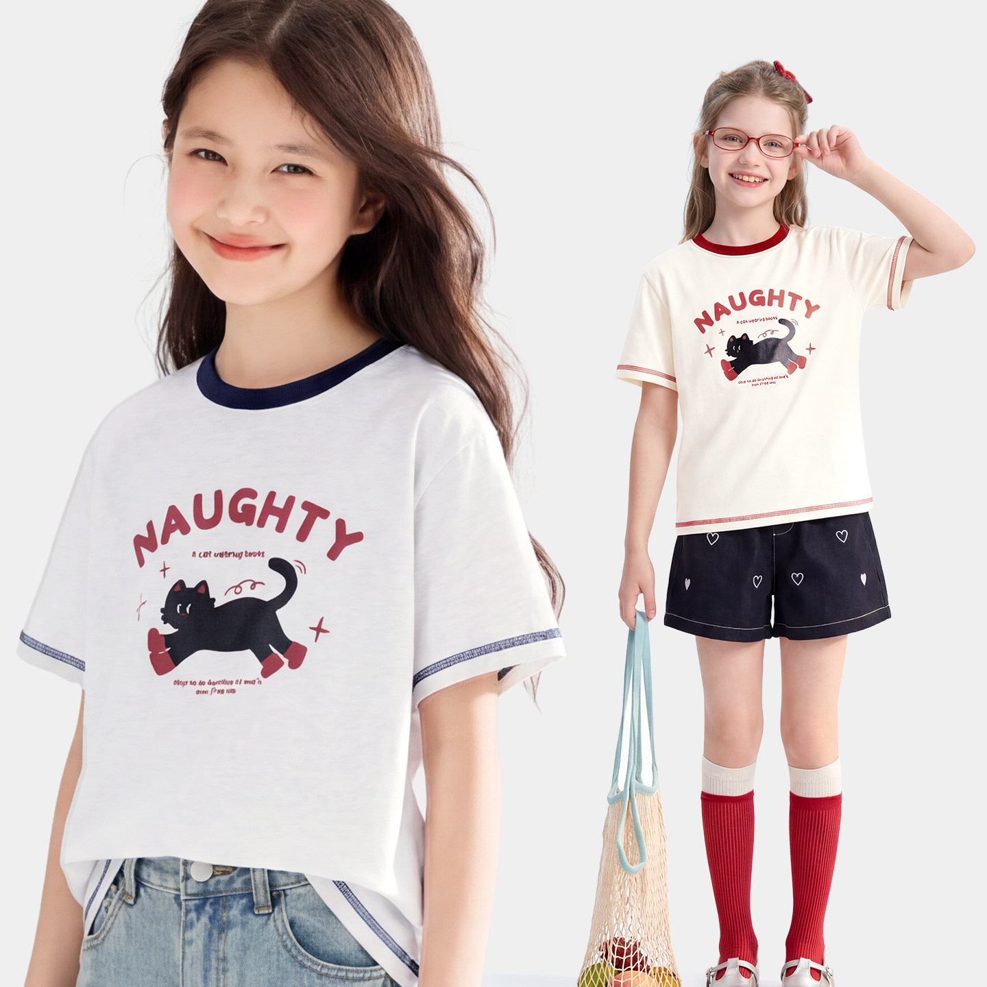 女童短袖T恤儿童夏装新款打底衫大童青少年洋气上衣夏季亲子装