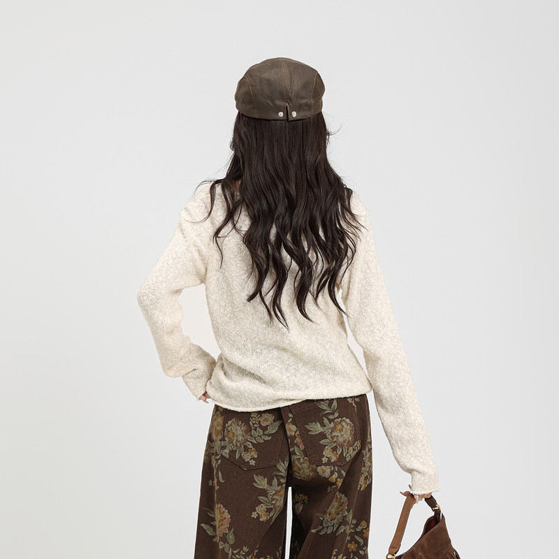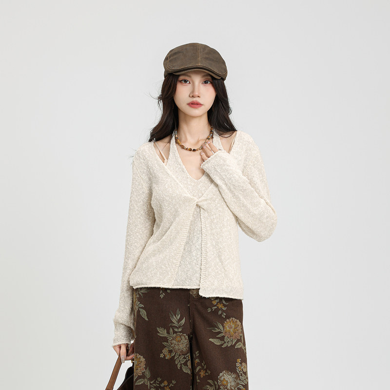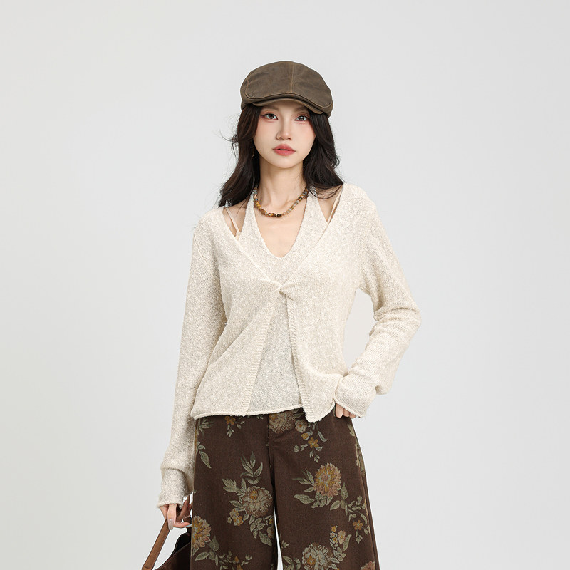 记忆的起点V领挂脖毛衣针织衫氛围感上衣2025冬季新款女69AD55160
