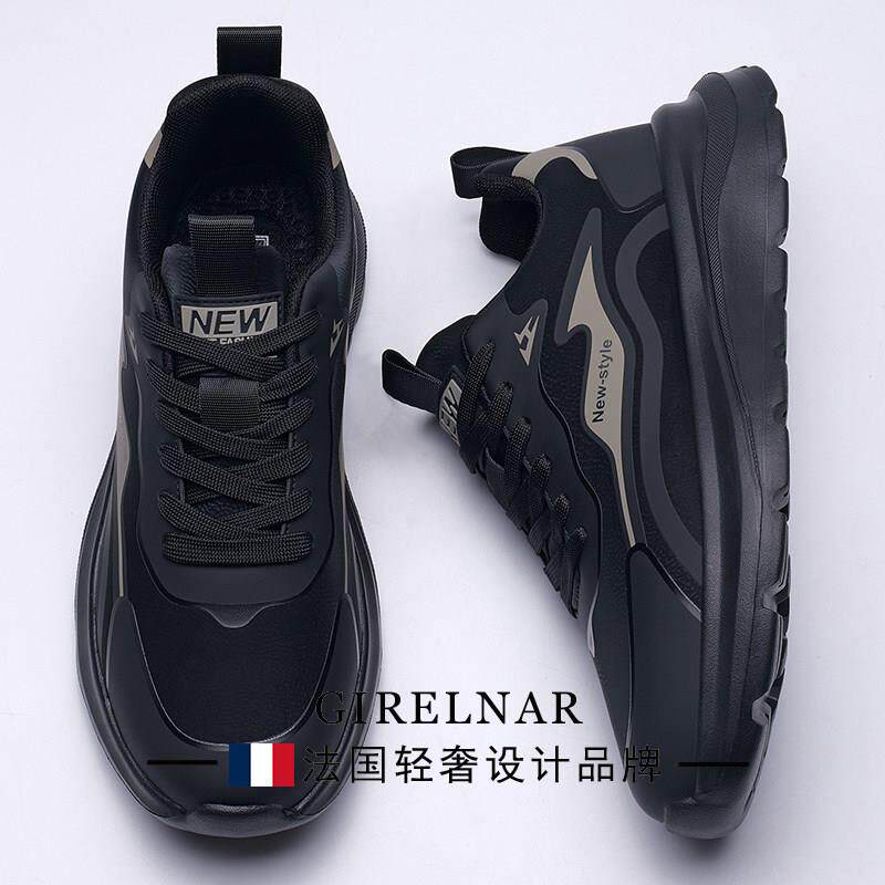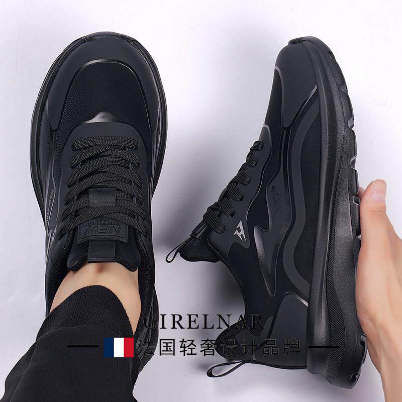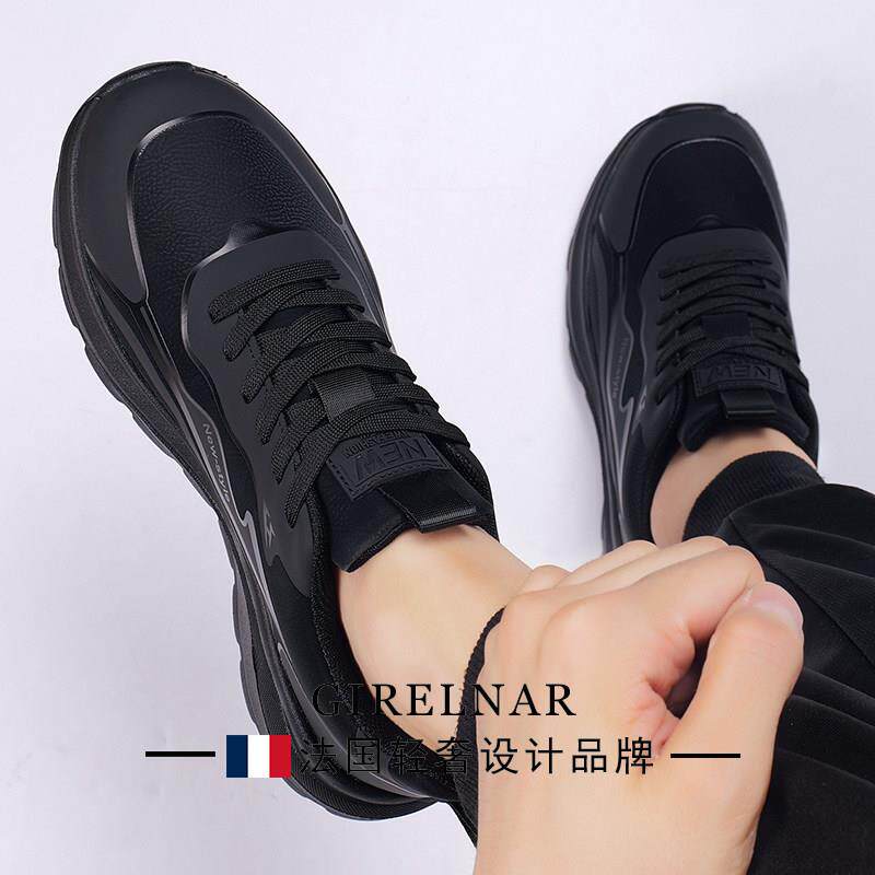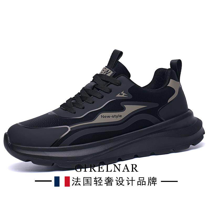 爵澜纳2025秋季新款黑色透气运动鞋男潮流百搭防滑耐磨休闲鞋男