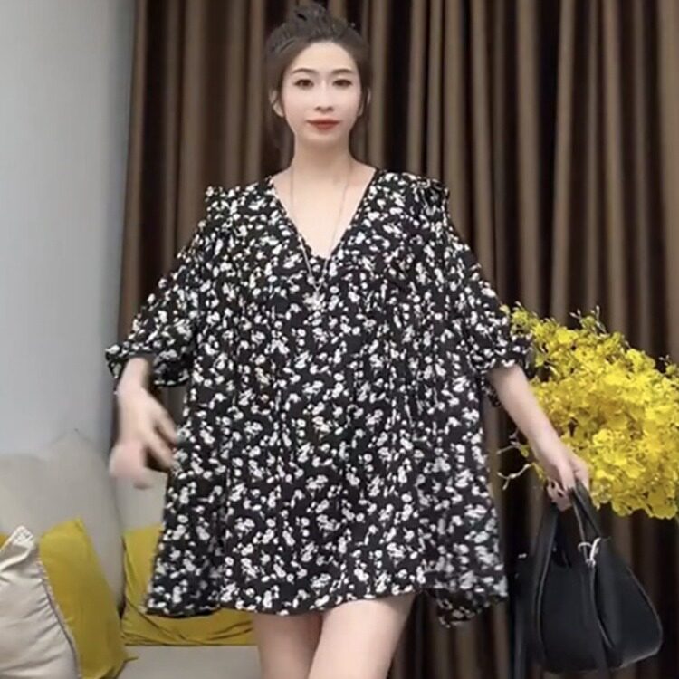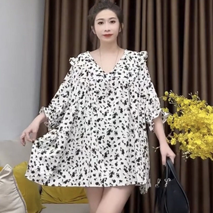 胖mm2-300斤特大码春夏碎花娃娃领连衣裙女宽松洋气轻薄透气A字裙