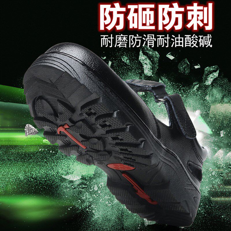 夏季刚包头劳保凉鞋男超轻便工作防砸网面透气防臭工地防扎钉男鞋