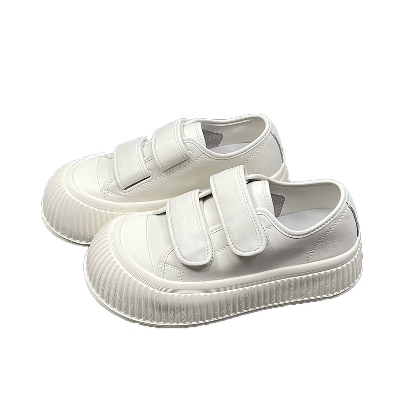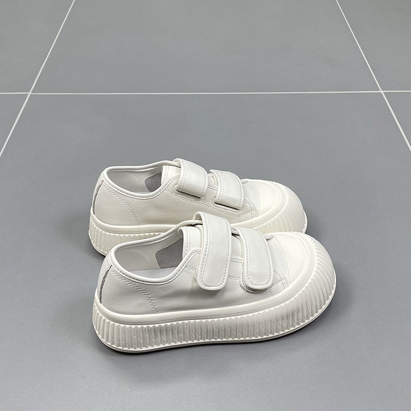 速利玛真皮小白鞋女2026春夏新款圆头厚底魔术贴牛皮运动休闲板鞋