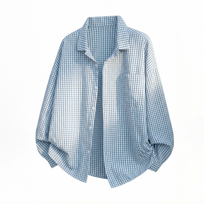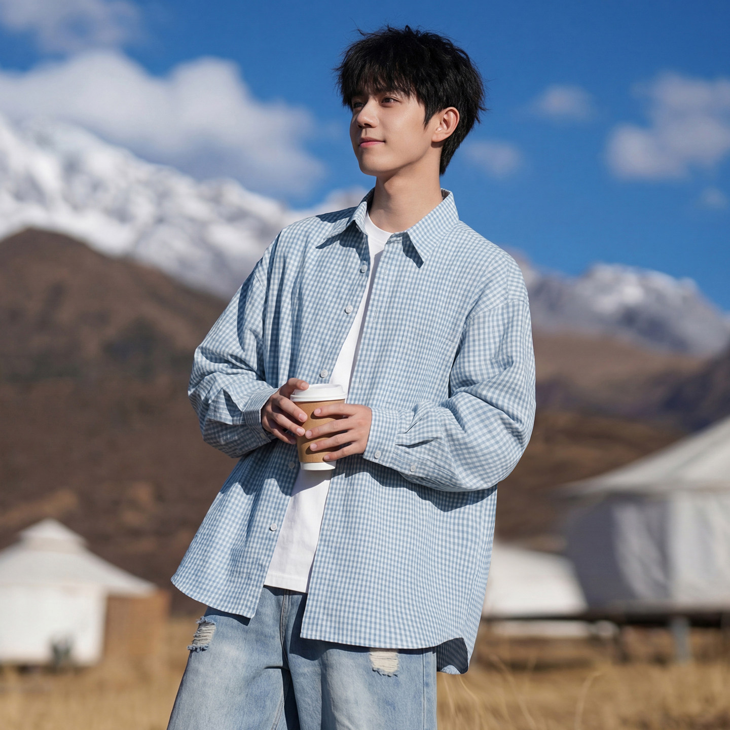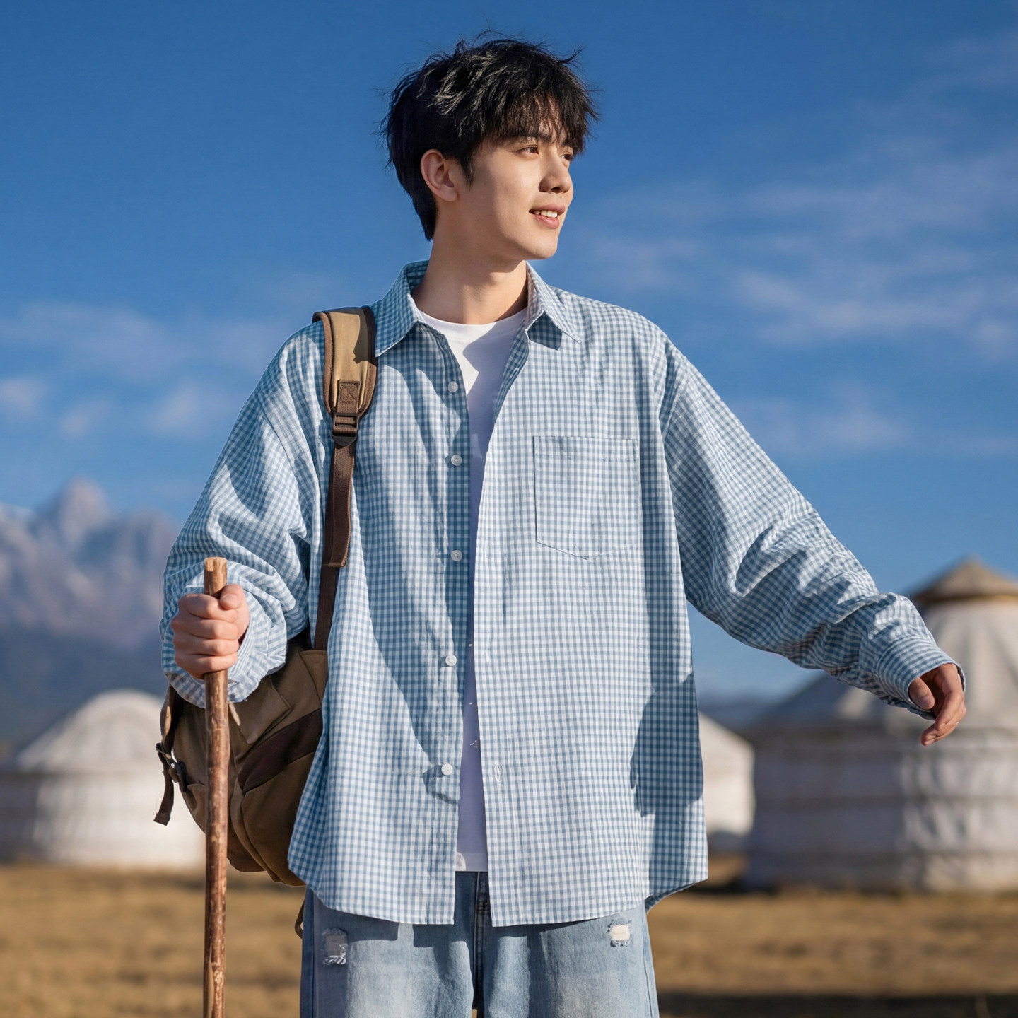 WASSUP美式复古休闲格纹衬衫百搭通勤宽松男女款春秋宽松衬衣外套