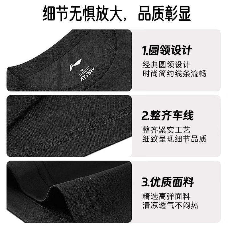 李宁速干短袖T恤男夏季新款户外透气薄款休闲运动上衣健身跑步服