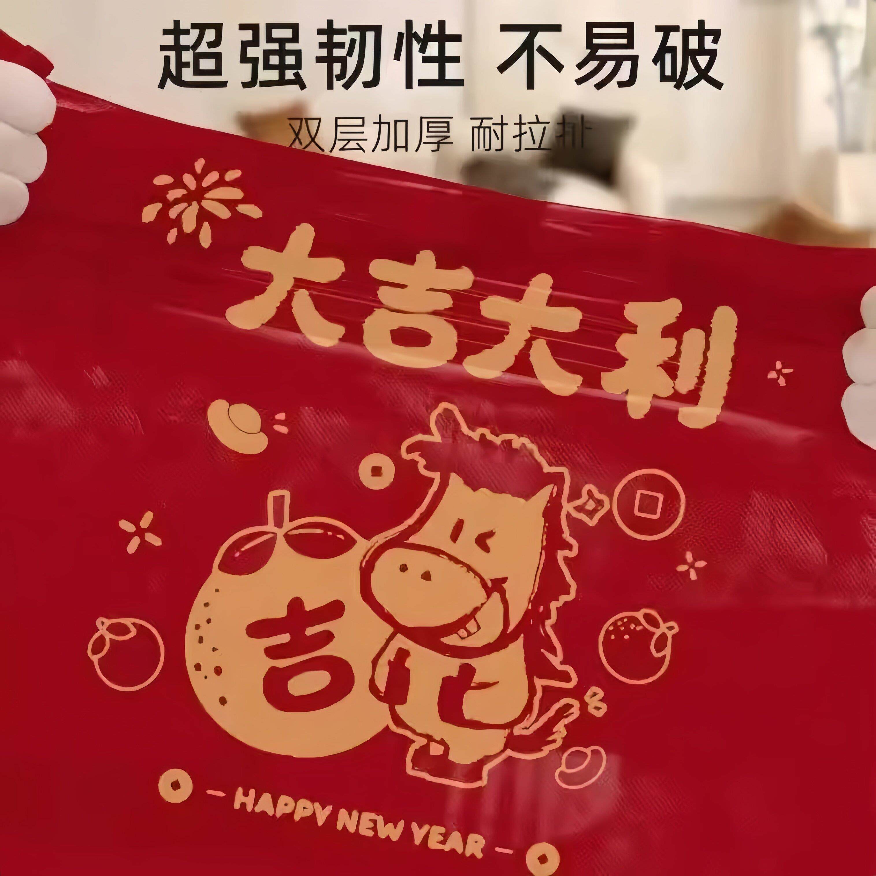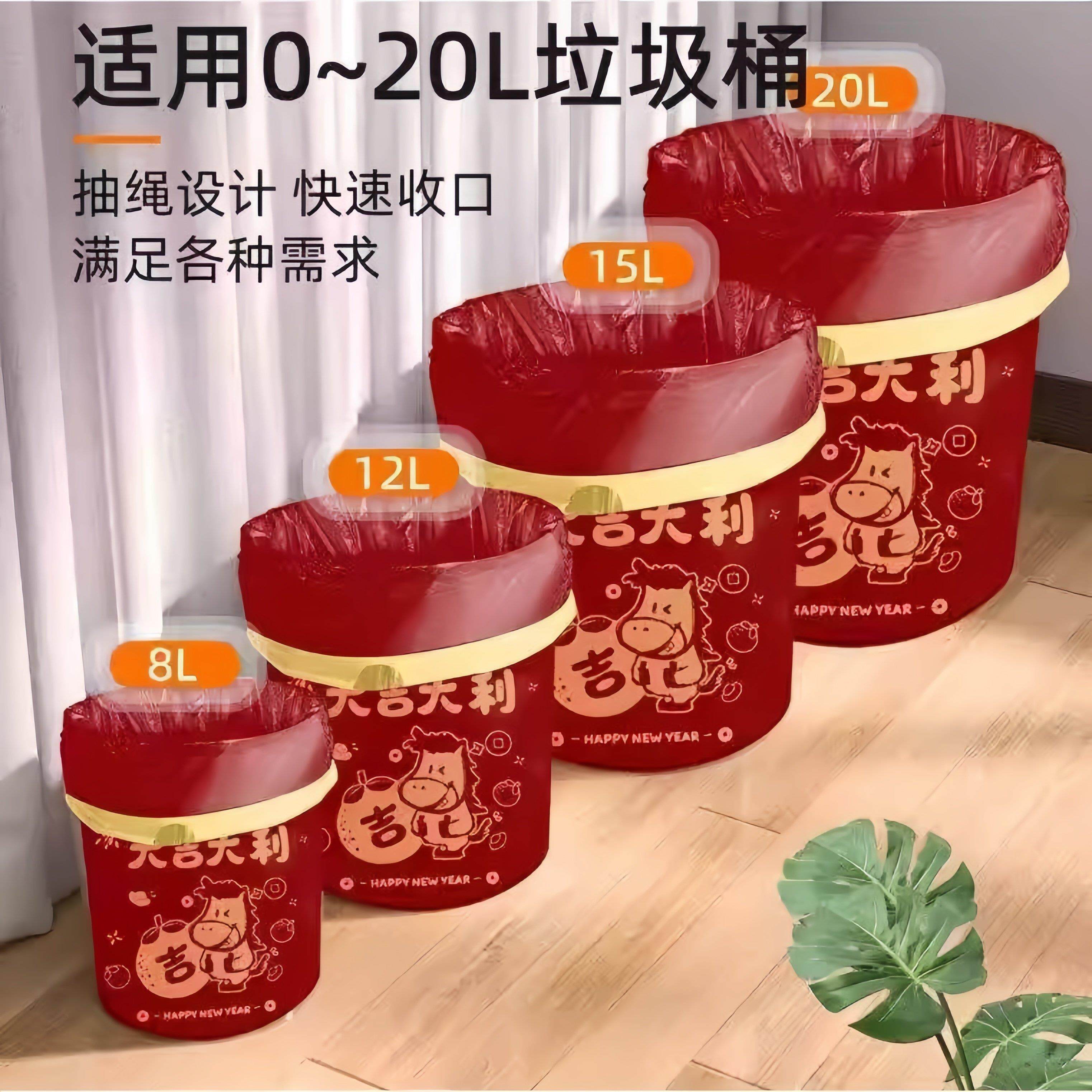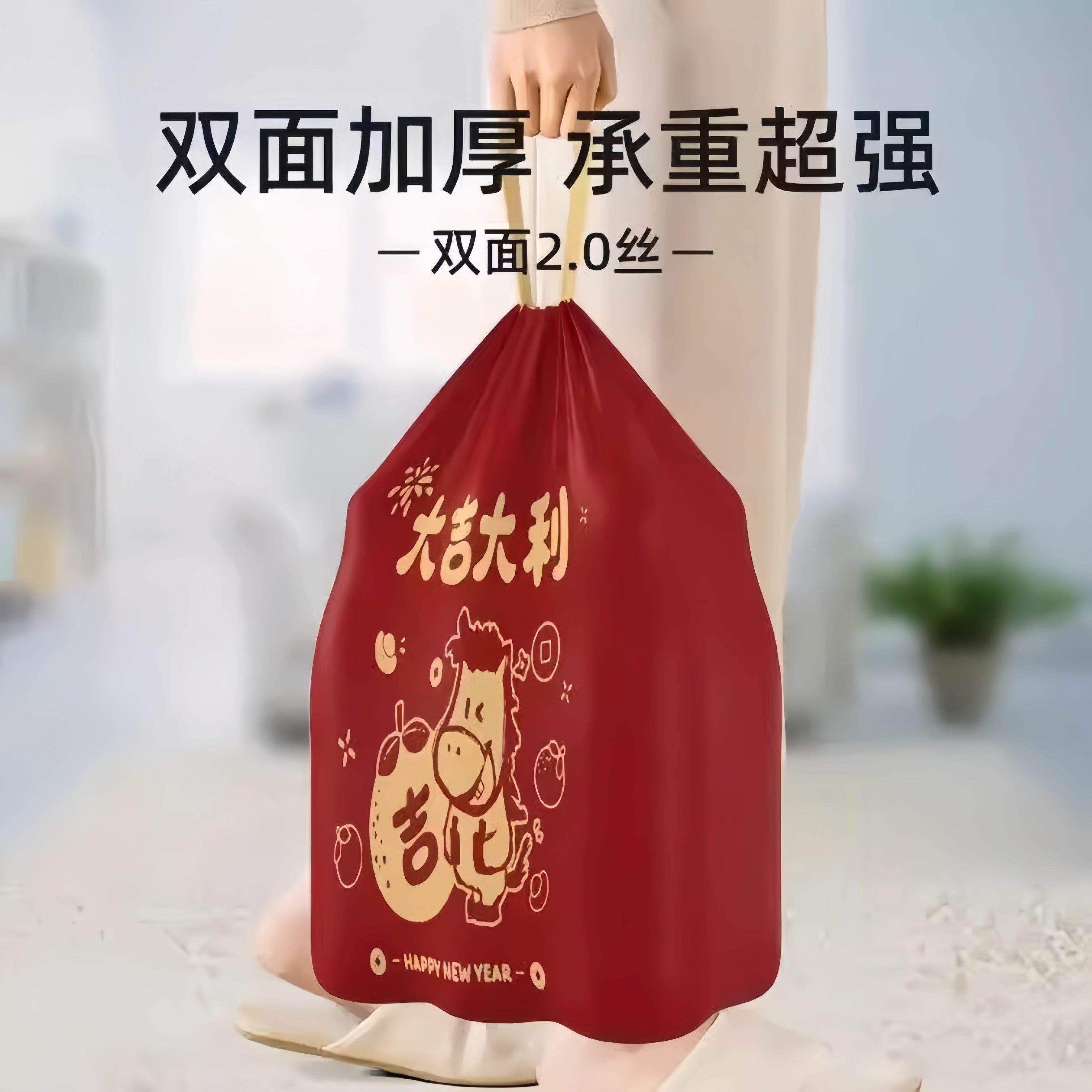 新年垃圾袋家用加厚手提式免撕大号抽绳超厚厨房用马年红色清洁袋